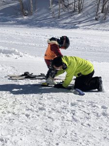 今日はお家の方も一緒です。スキーを履く姿もちょっと嬉しそう・・・。