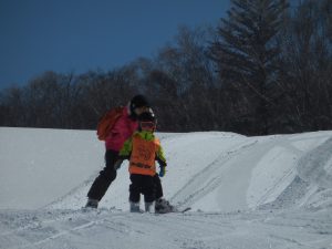 リフトに乗るとき、降りるとき「お願いしまーす」「ありがとうございました」の挨拶が、大きな声で言えるようになったよ。