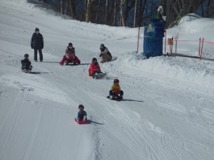 丸池スキー場キッズパークをお借りして、親子でスキーやそり遊びを楽しみました。