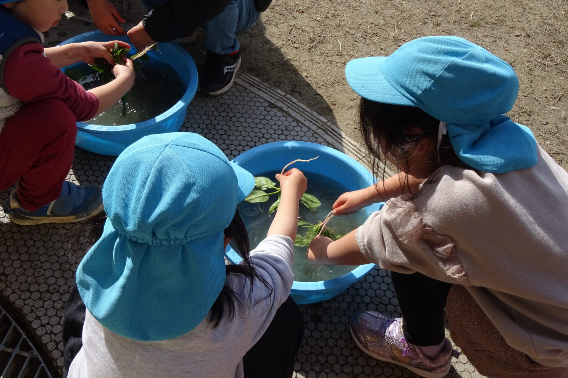 根っこまできれいに土を落とし、丁寧に洗う年中さん。