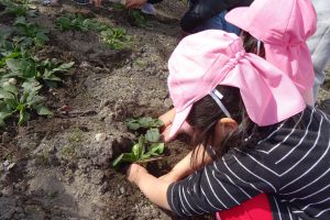 「根っこが長くて、掘っても掘っても抜けない~!先生手伝って」と年少さん。根気よく土を掘っていました。