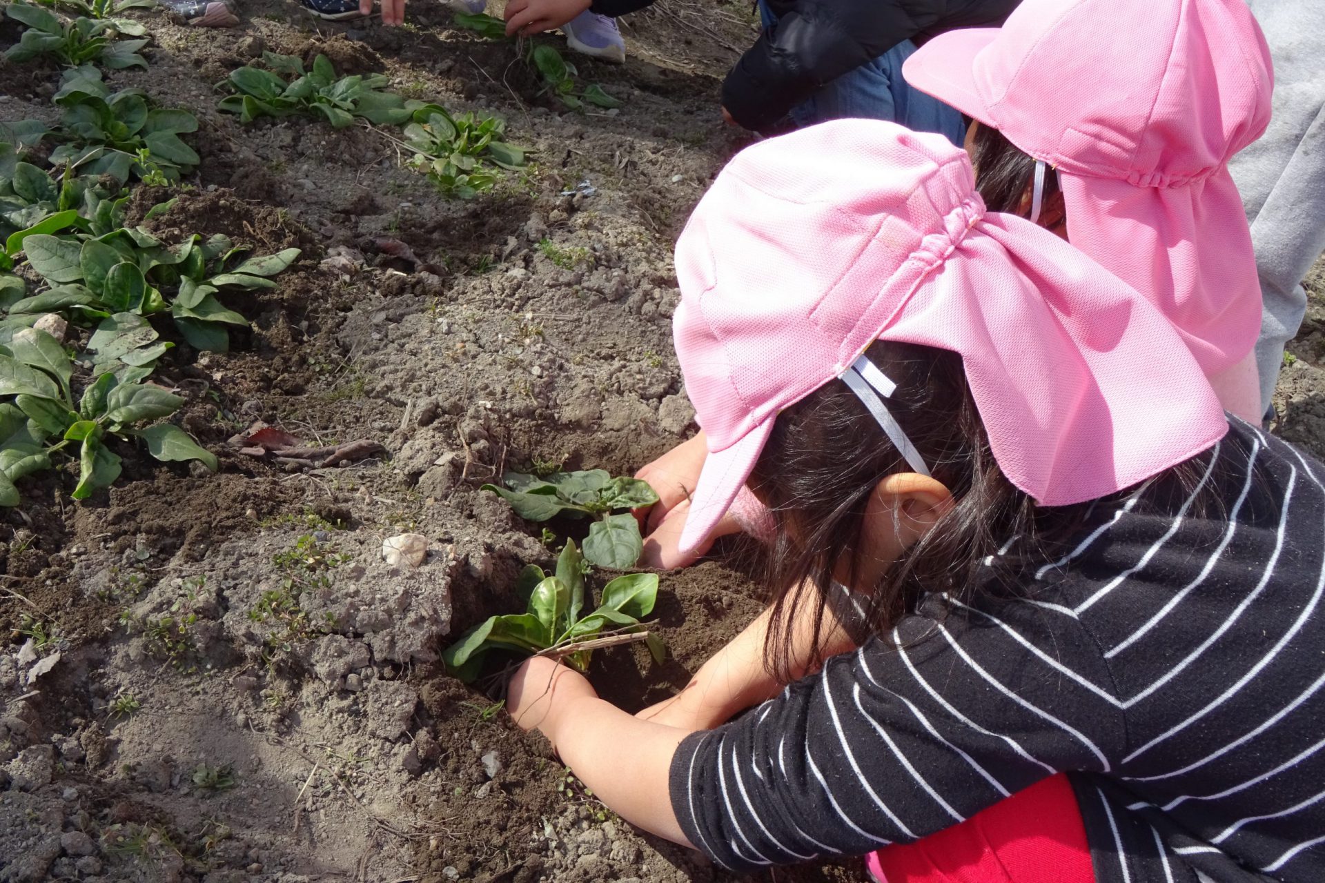 「もう少し離れて種を撒けばよかったかな」と、二十日大根を育てた経験から、ほうれん草の生長に気づくお友だちもいました。