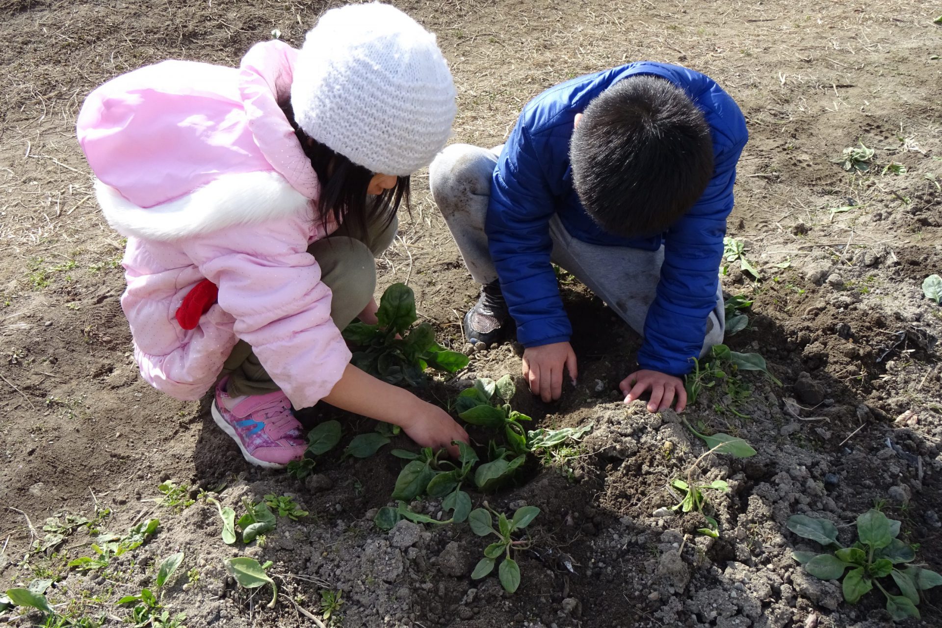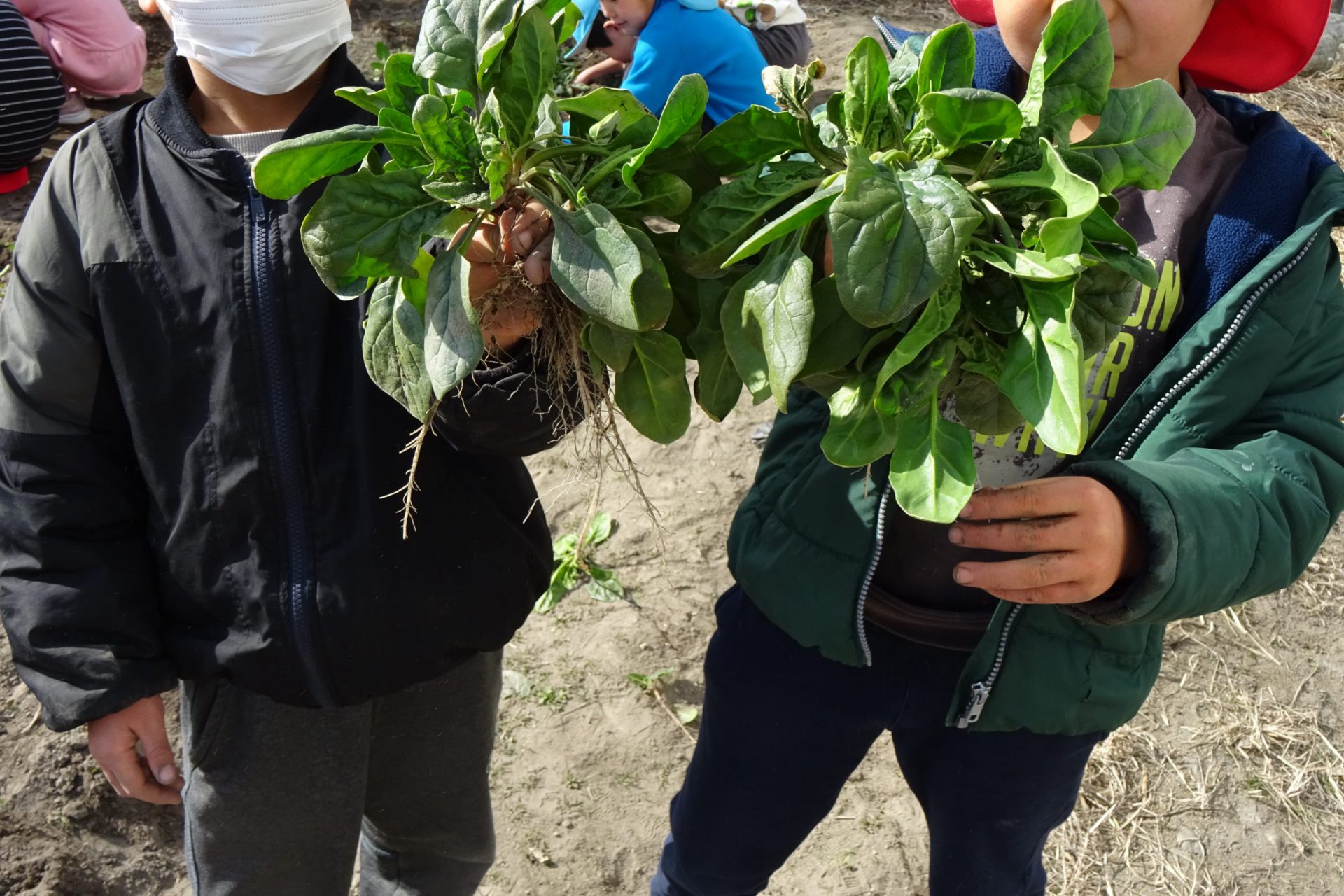 冷たい風でも、しんしんと降る雪の中でも元気に遊ぶ保育園のお友だち。みんなも真冬のほうれん草のように、心も体も強くたくましくなっていこうね。