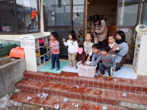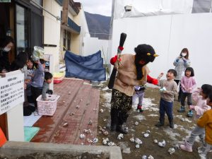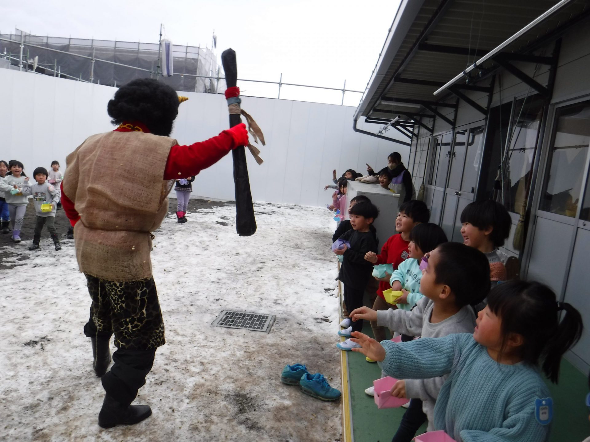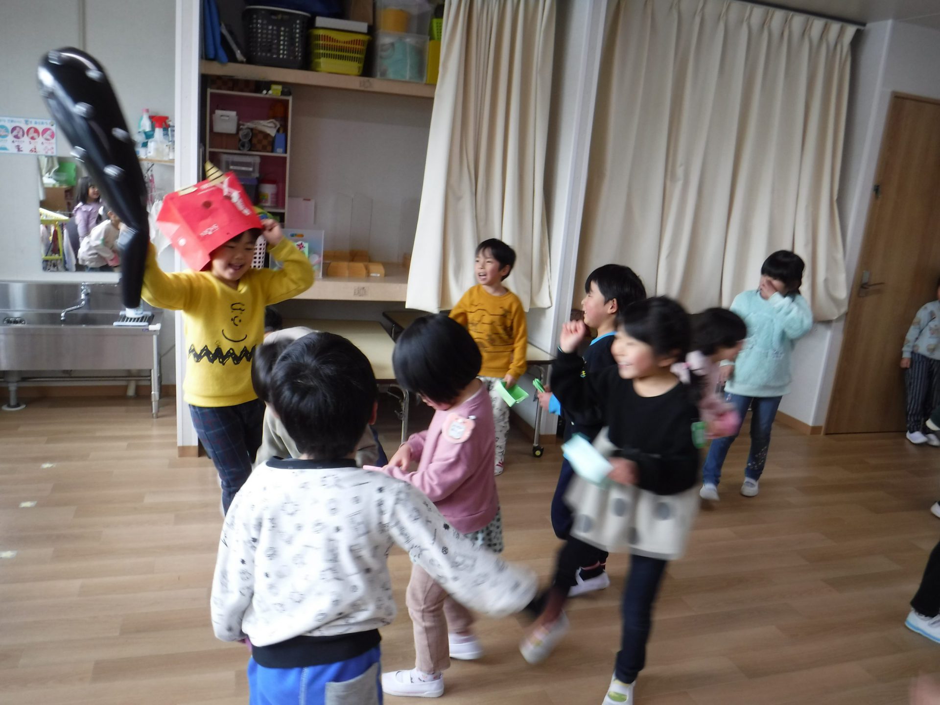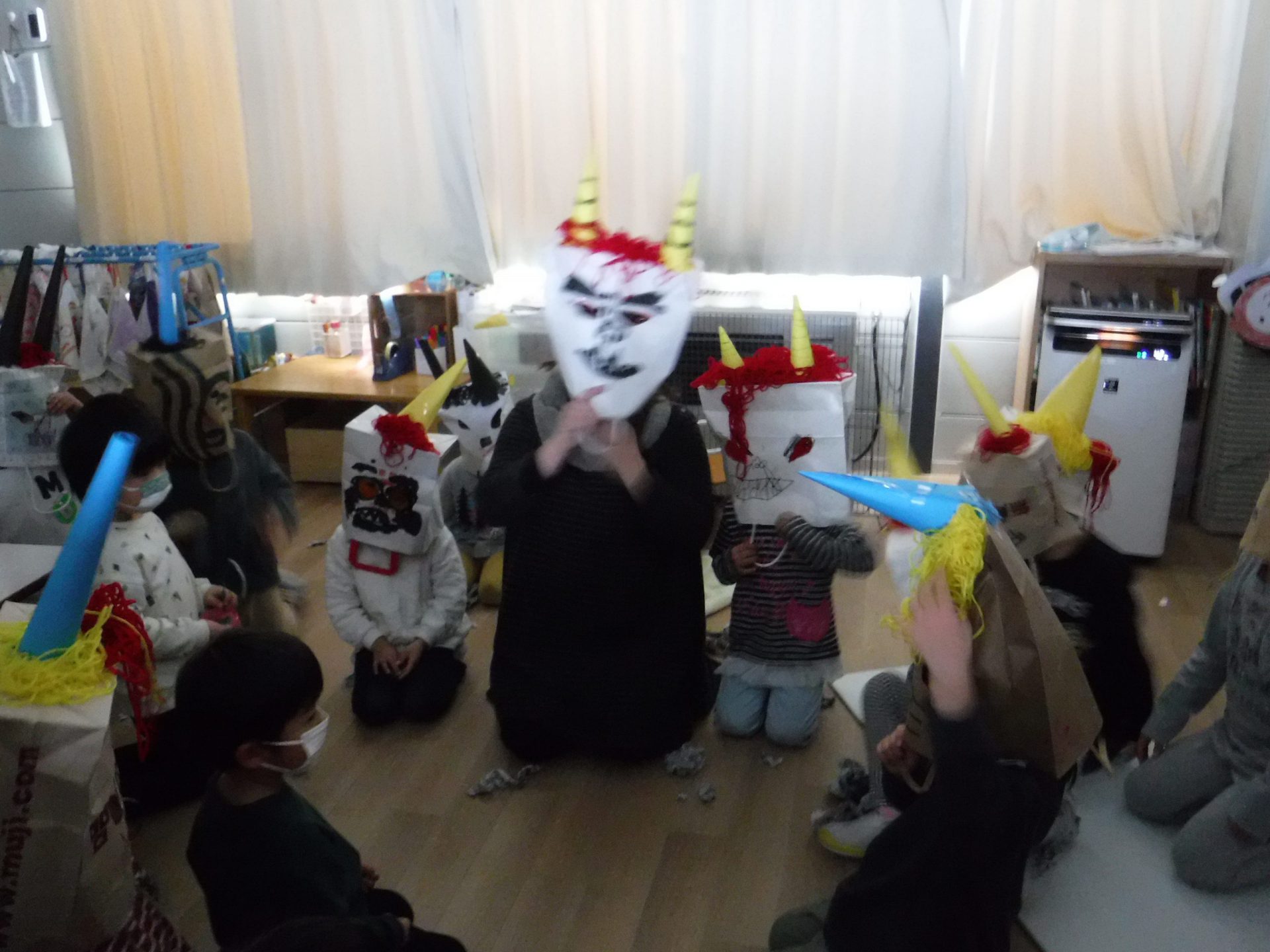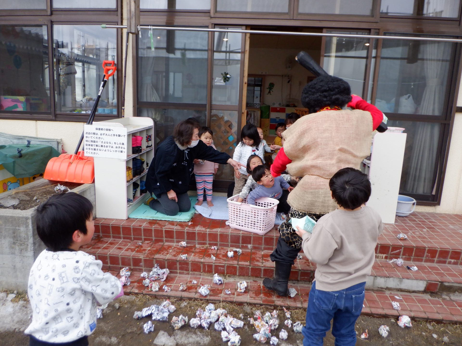 みんなで元気に豆まきをし、鬼は逃げて行き、心の鬼も追い払いました。