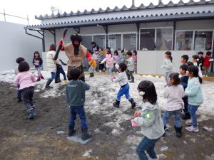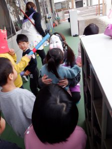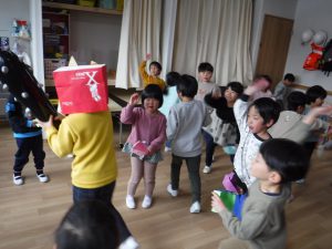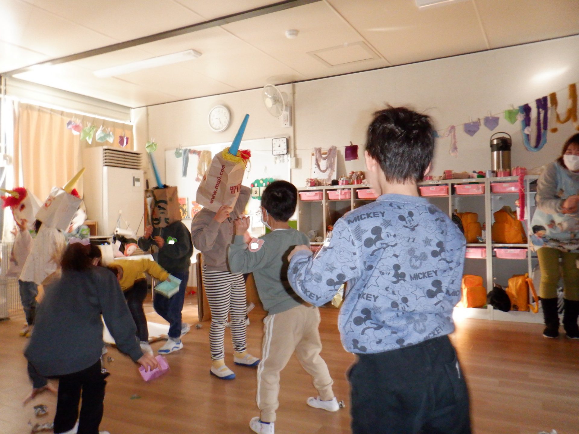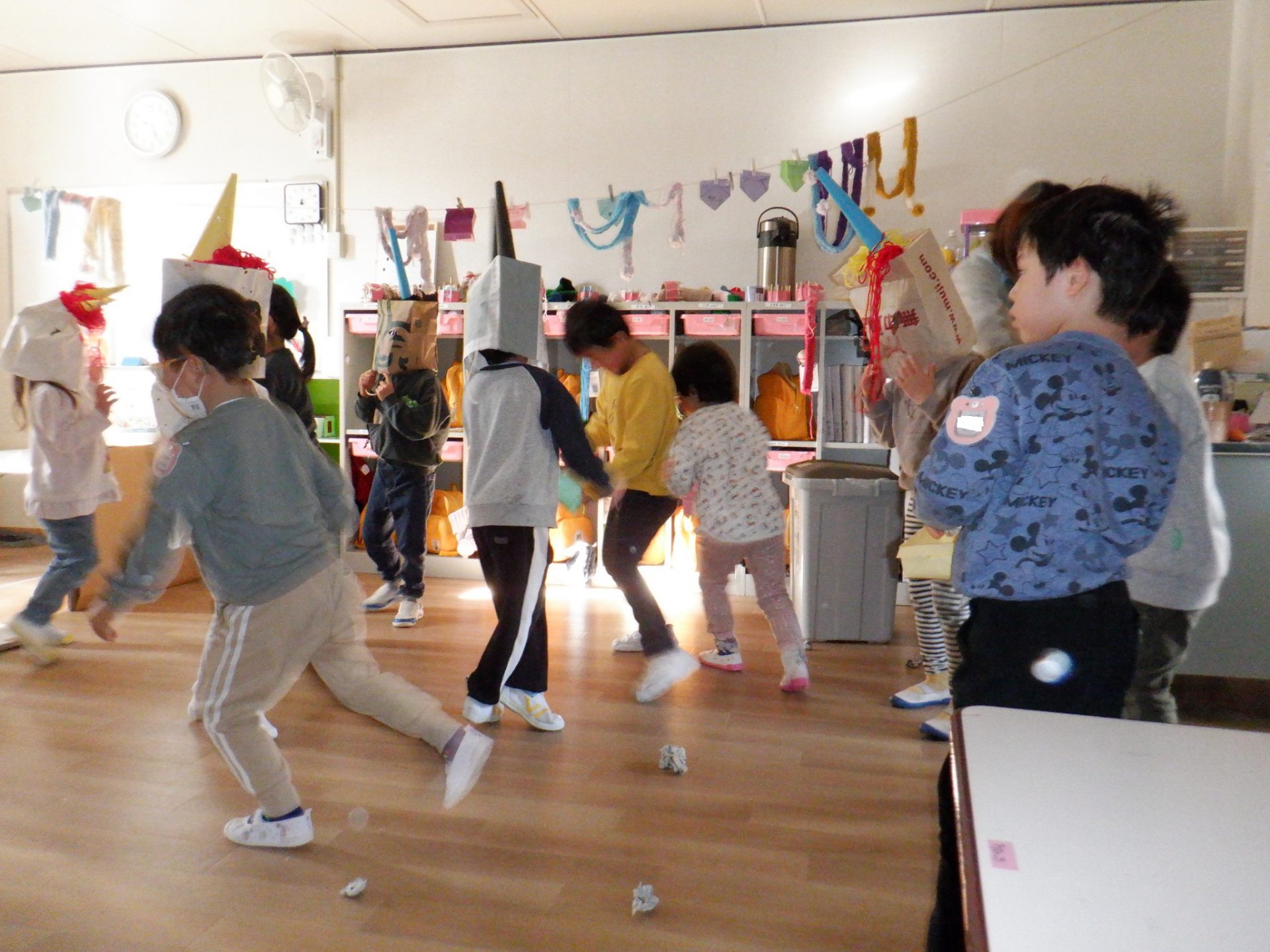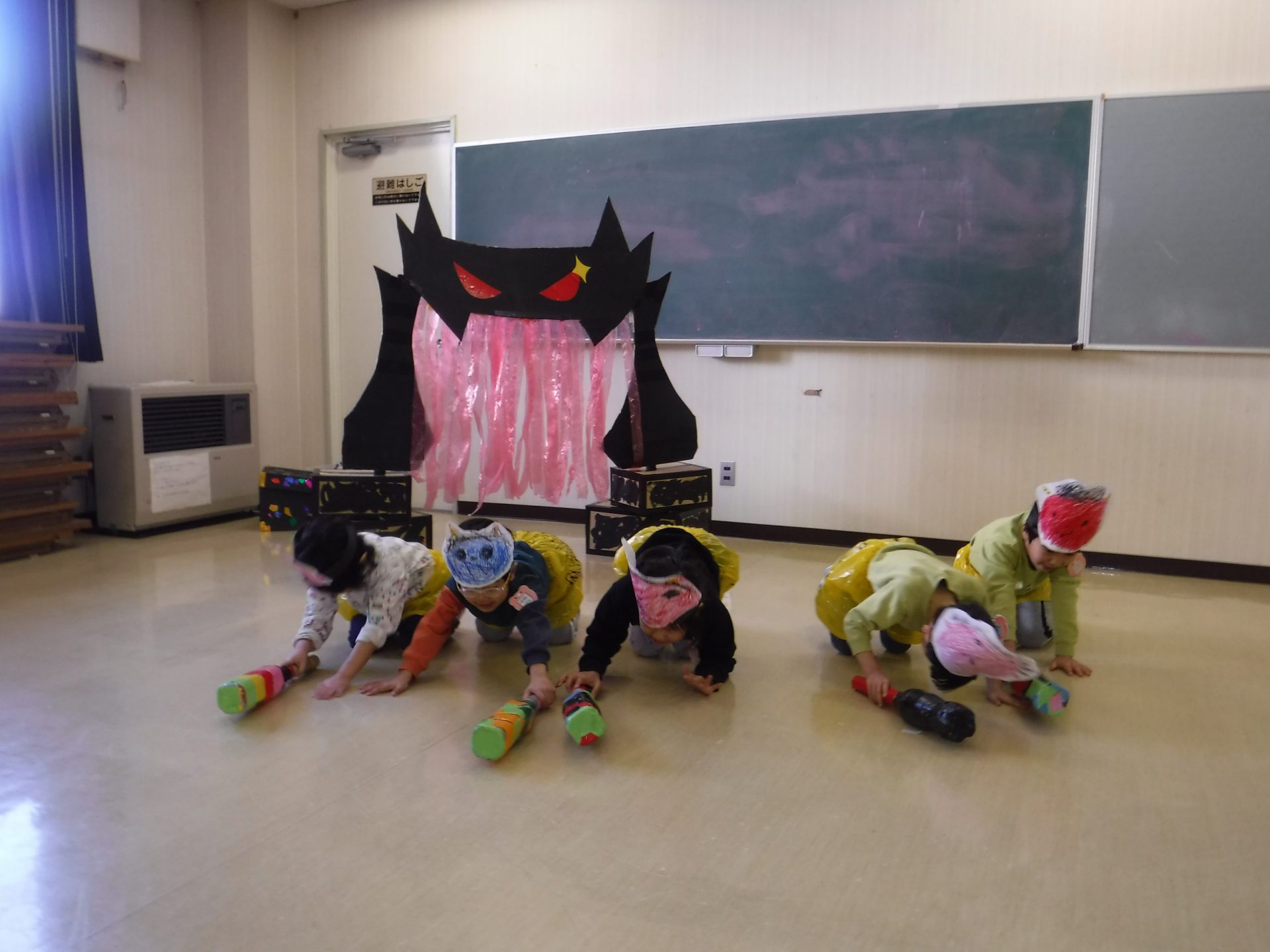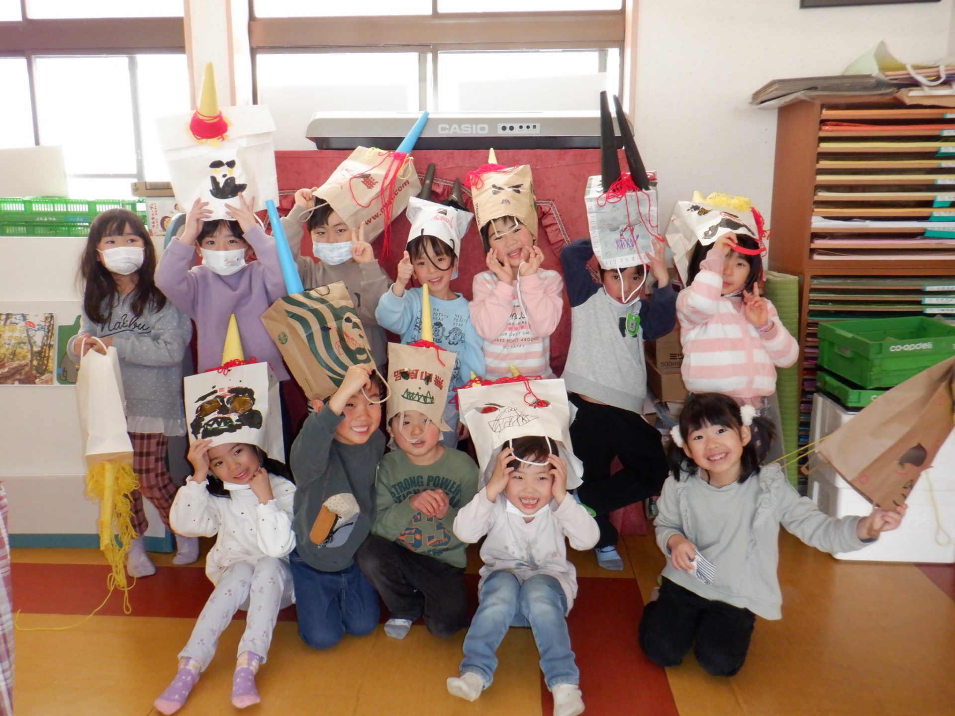 みんなで元気に豆まきをし、鬼は逃げて行き、心の鬼も追い払いました。