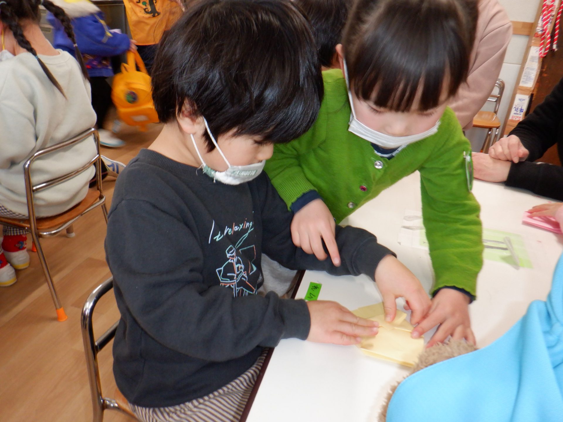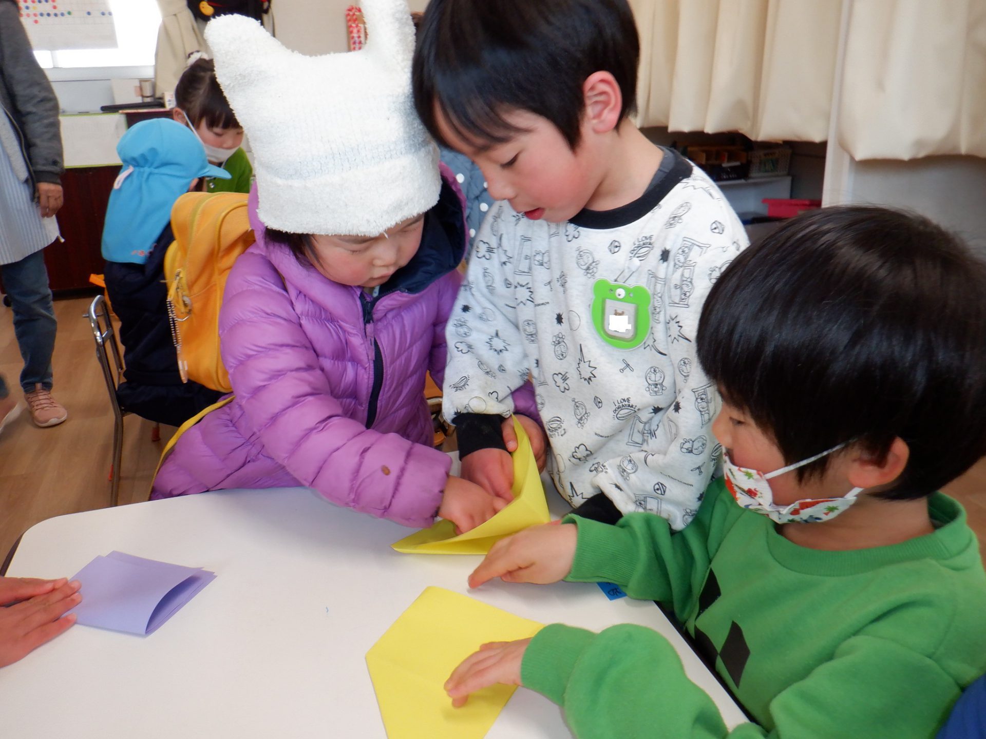 年中さんには折っているところにそっと手助け、言葉で伝えてくれたり