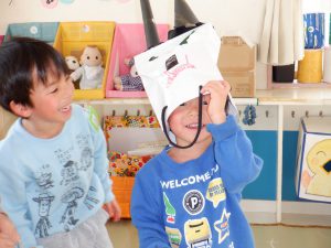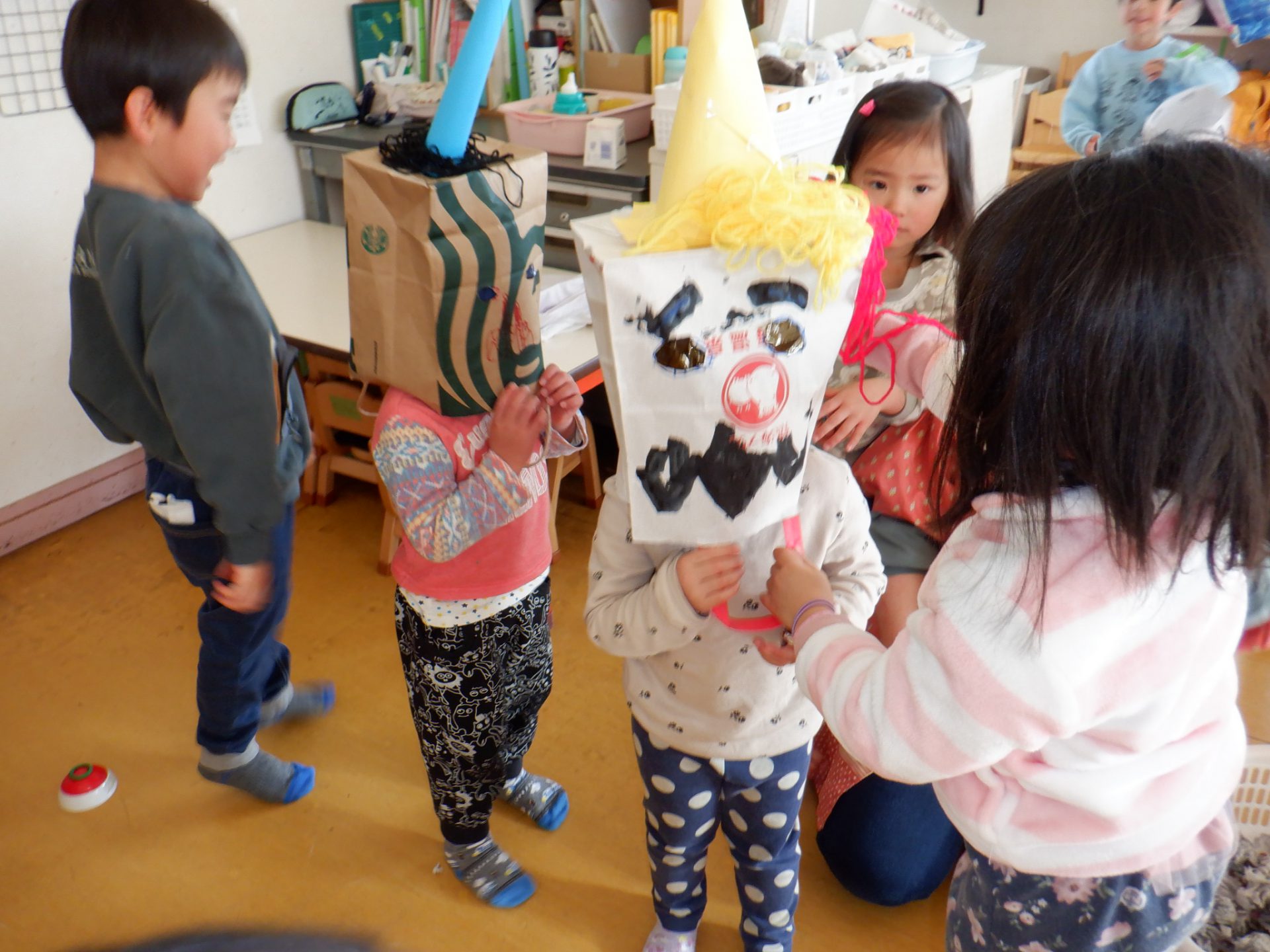 節分の活動では「小さい子をおどかしてみたい」ではなく、「こわくないよう自分たちが鬼になって練習させてあげよう」という優しい気持ち。