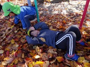 落ち葉の吹き溜まりから様々な遊びを考え展開していく