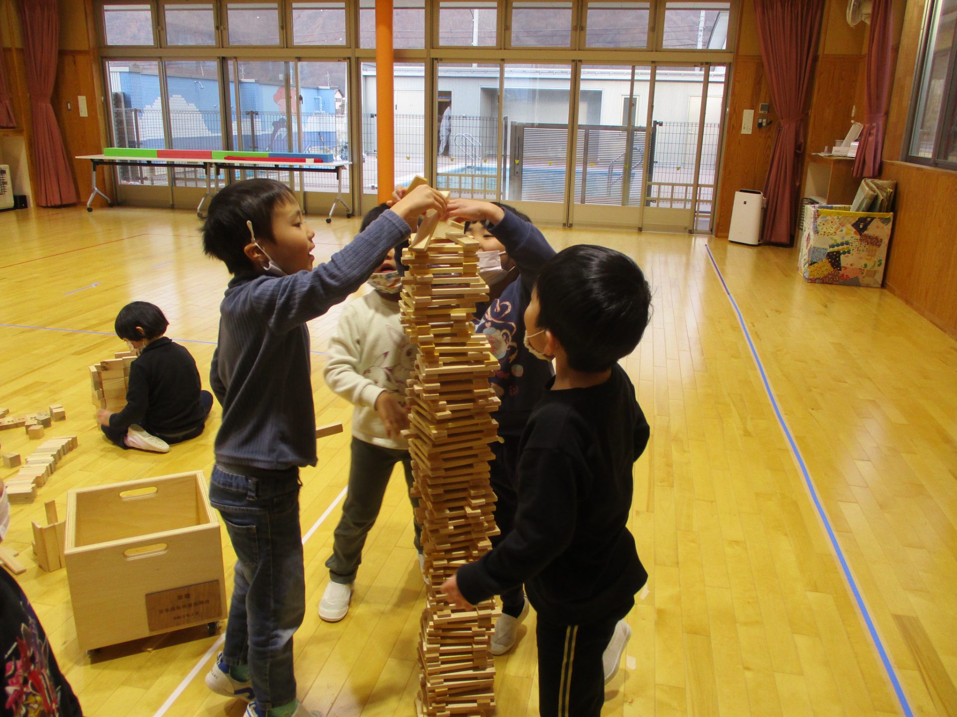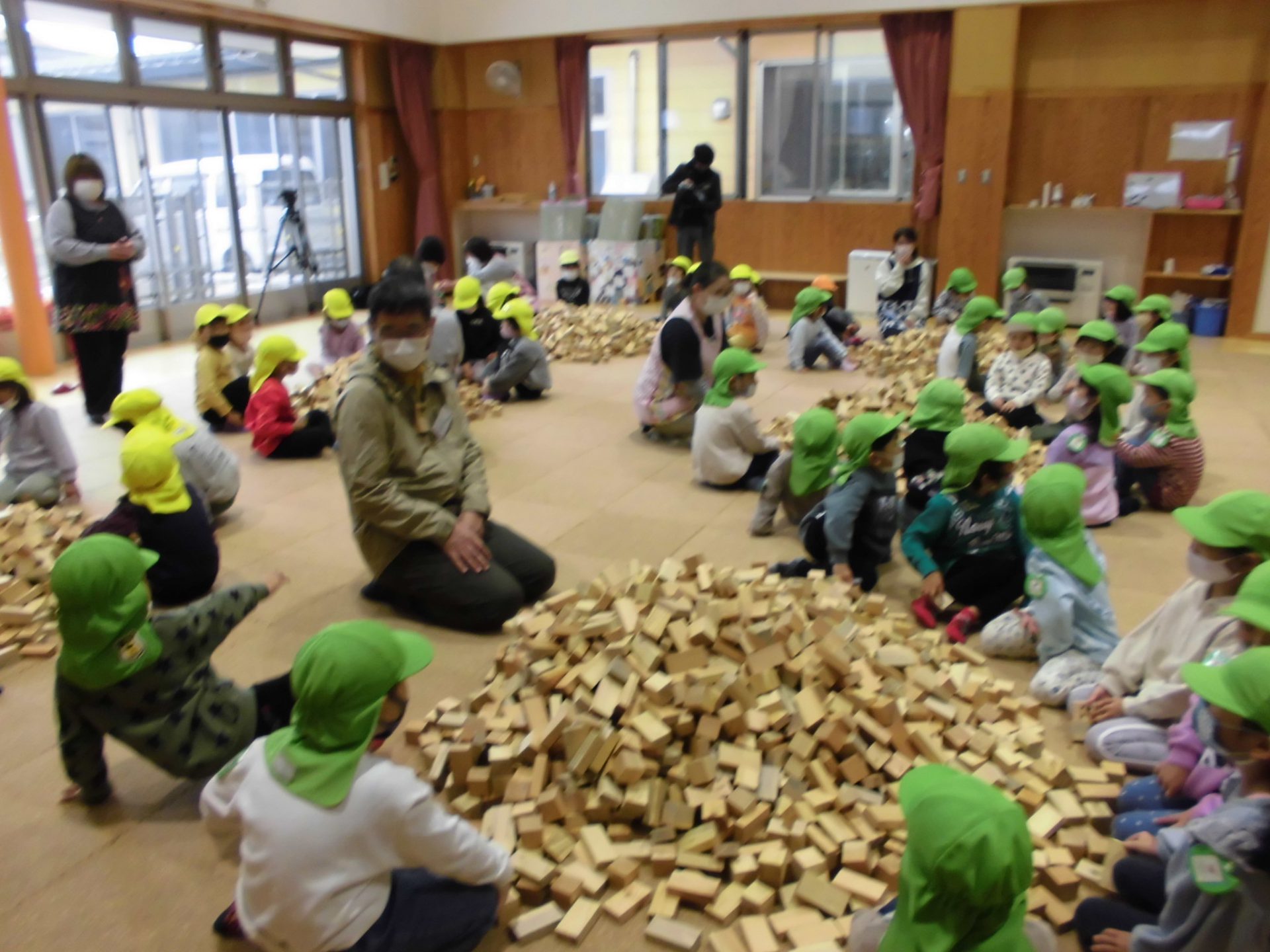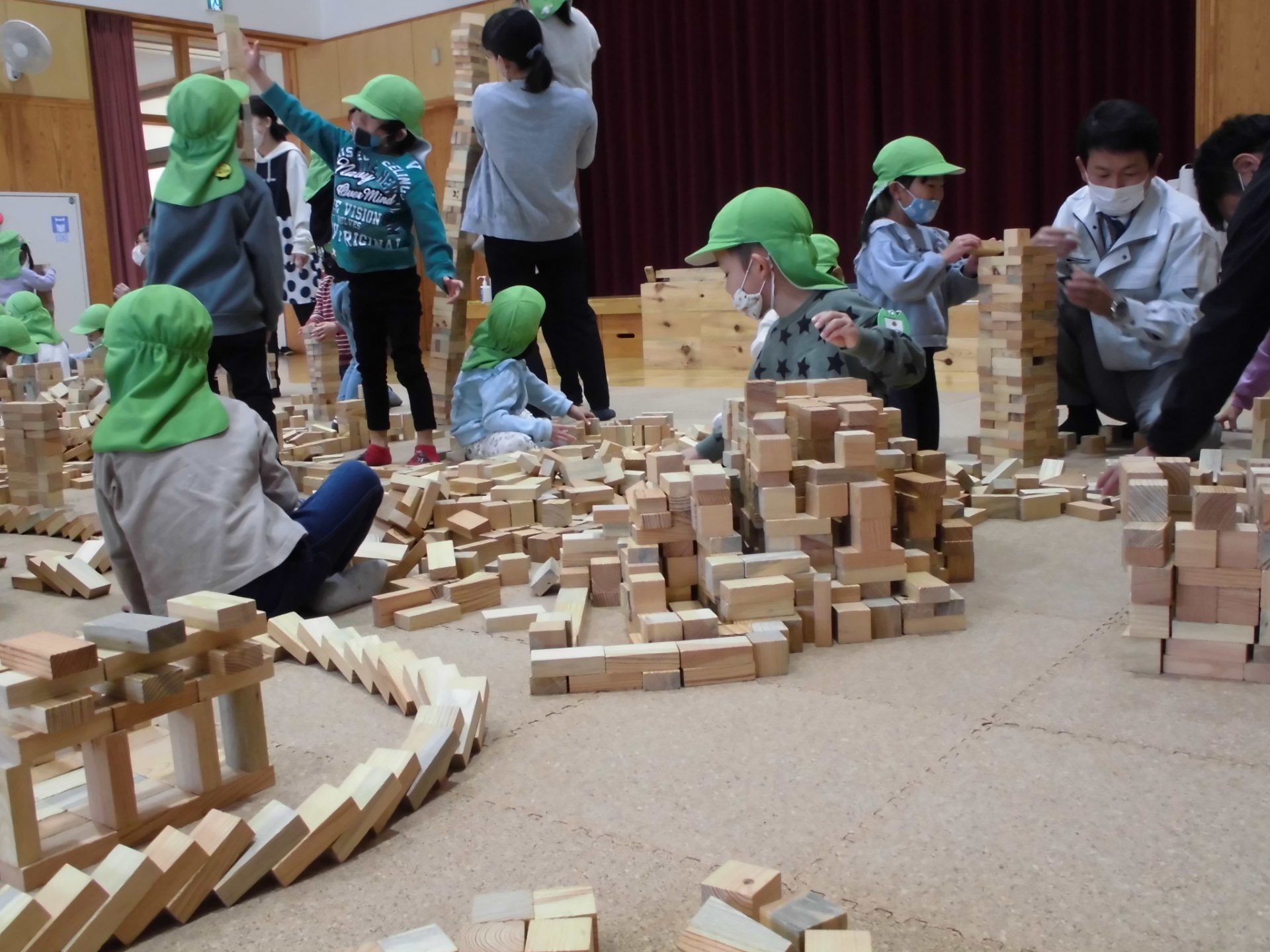 と〜っても沢山の積み木に「わぁ〜!」「すご〜い!!」とびっくりした子ども達・・・
