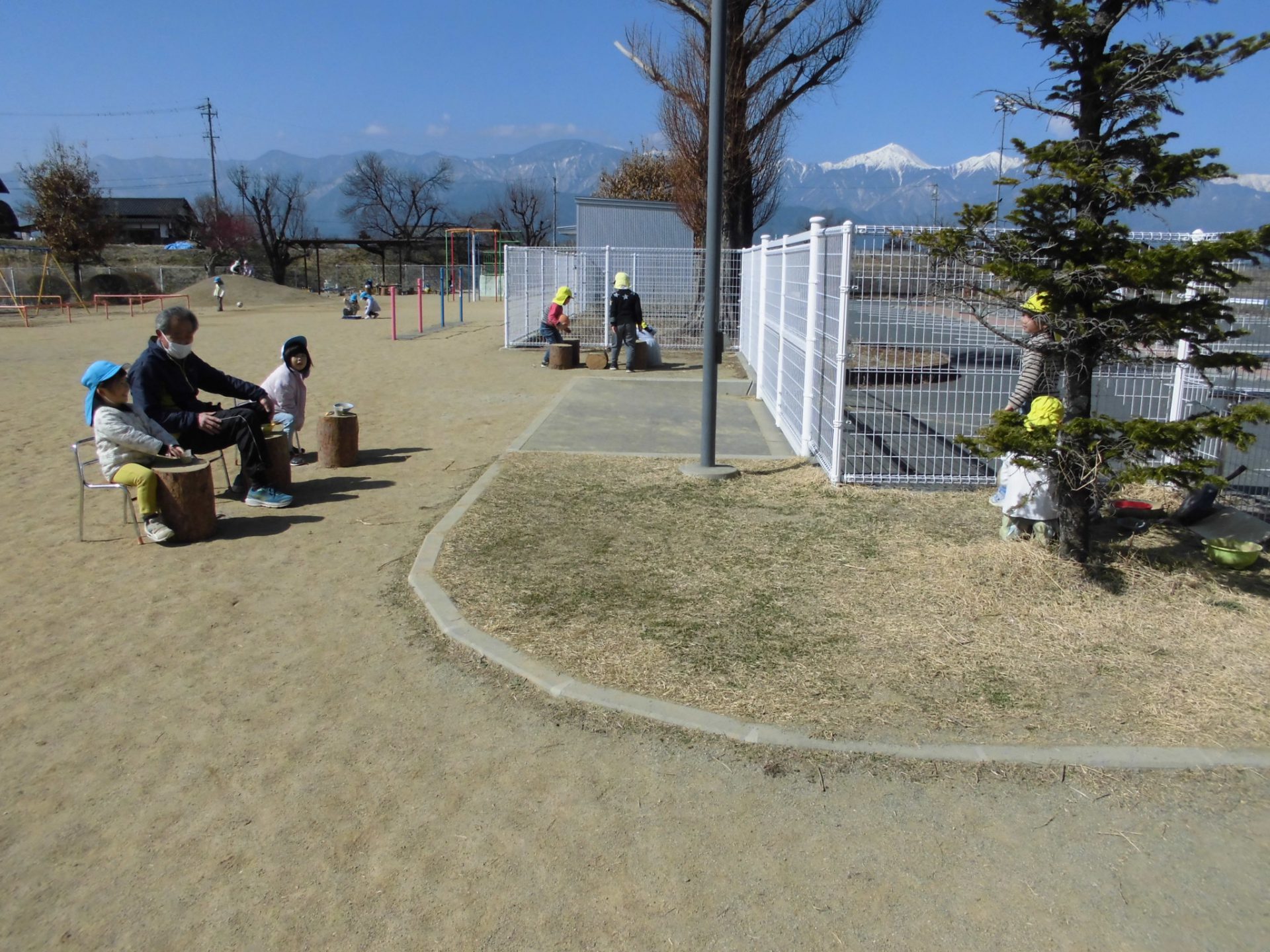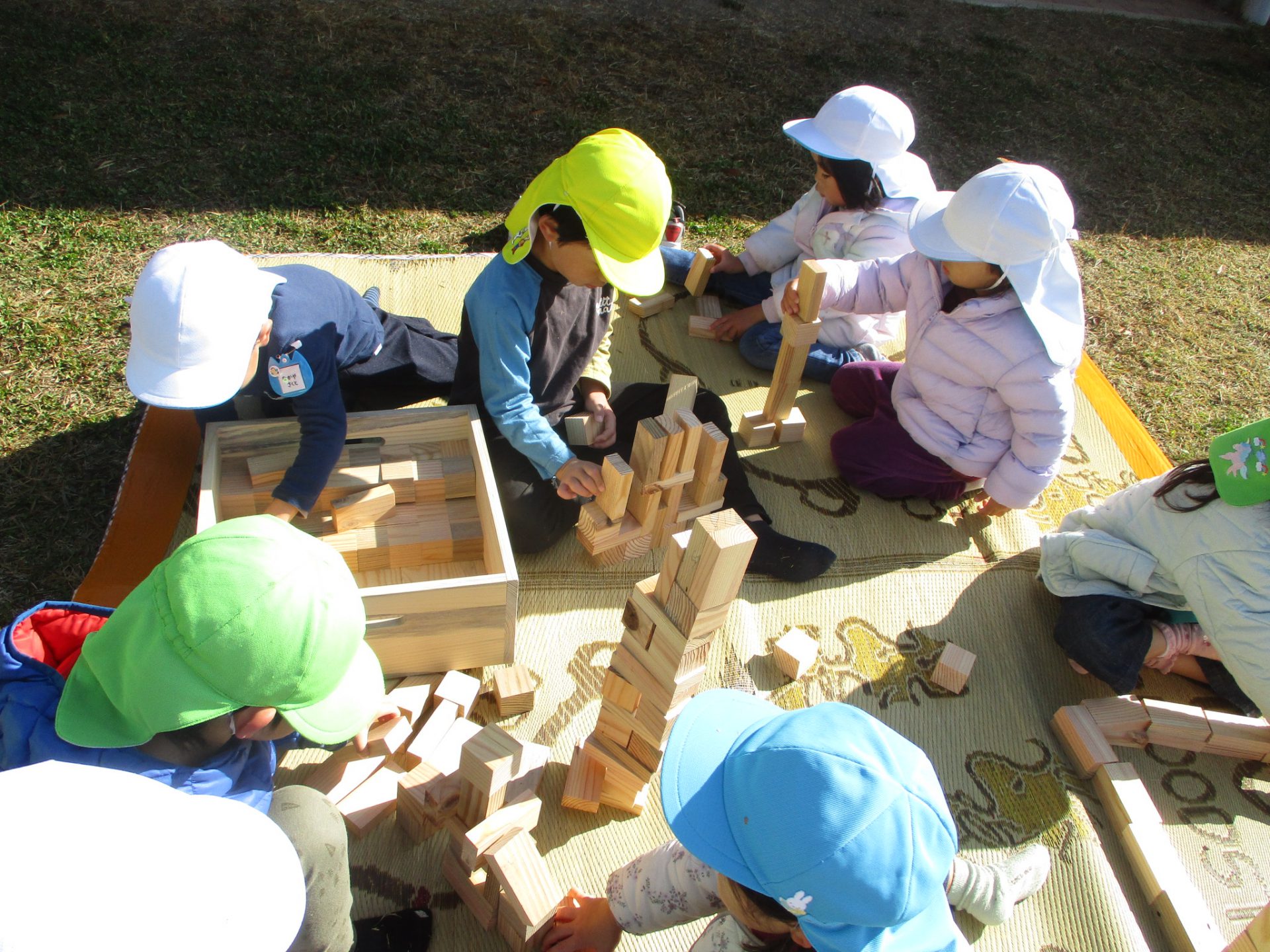 その後、頂いた積み木を園庭でも楽しんだり・・・