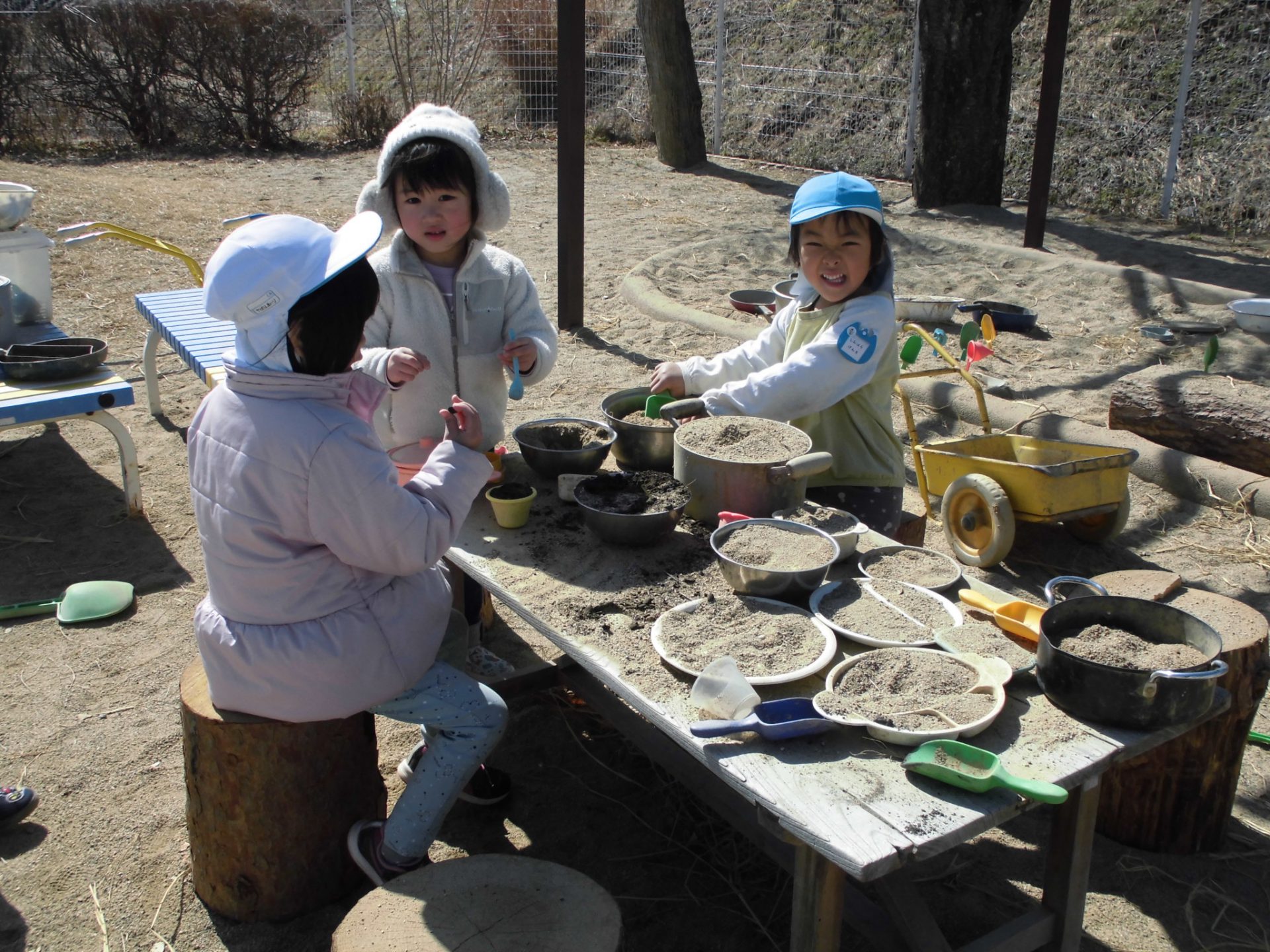 お砂場で工事現場ごっこ・・・