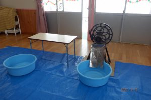 ・「機械のハンドルが重た~い!」「力を入れないと回らないよ。」