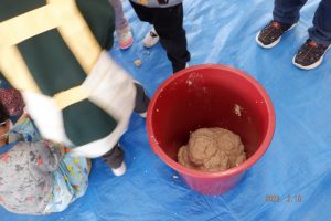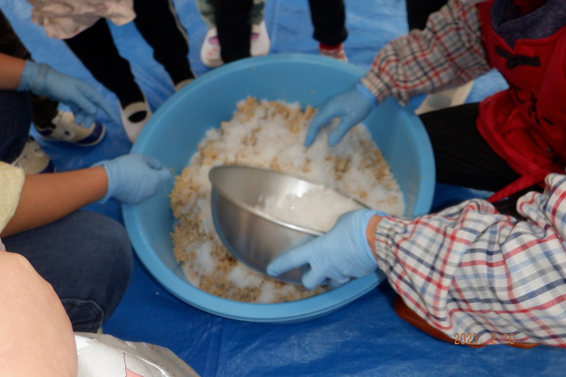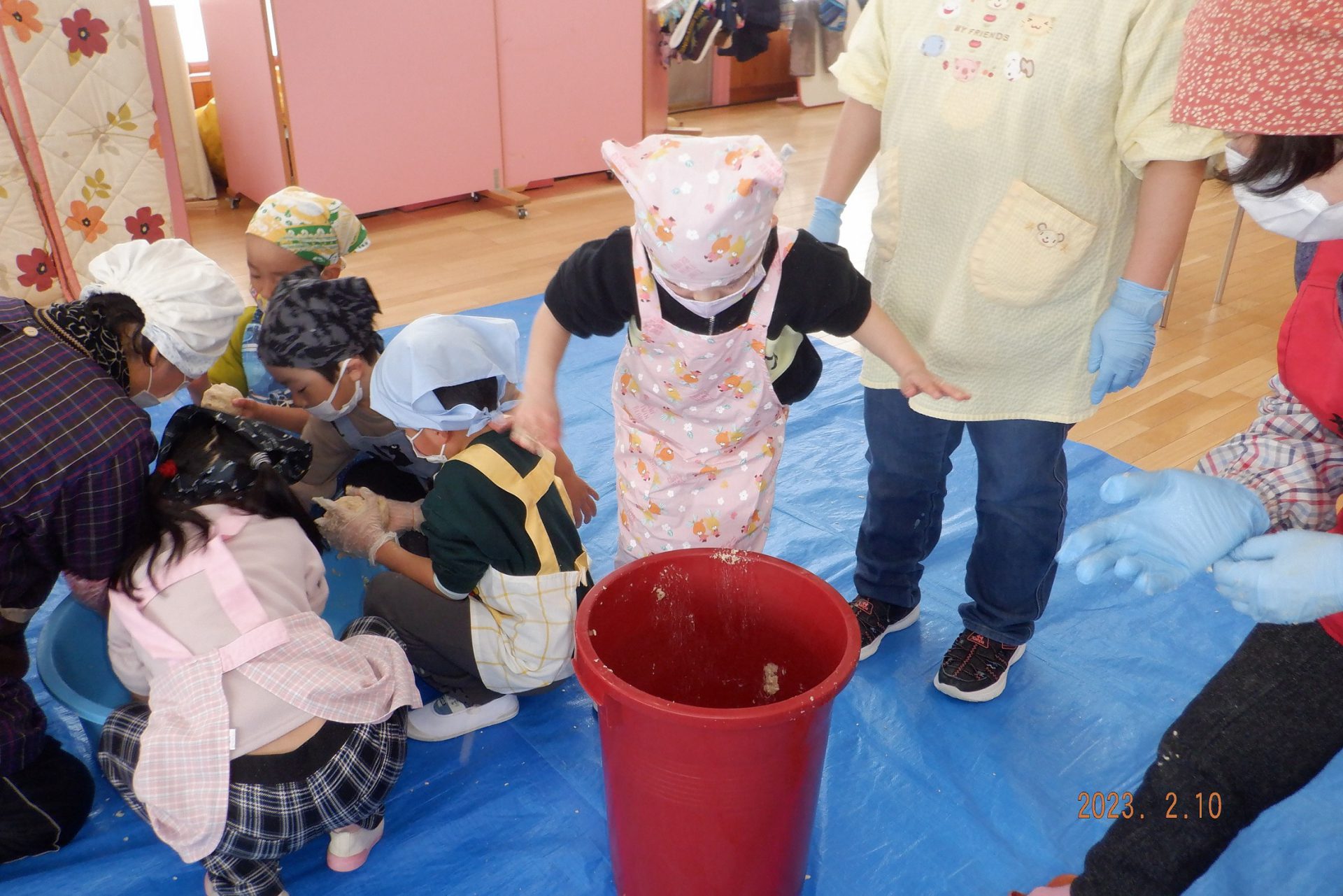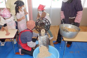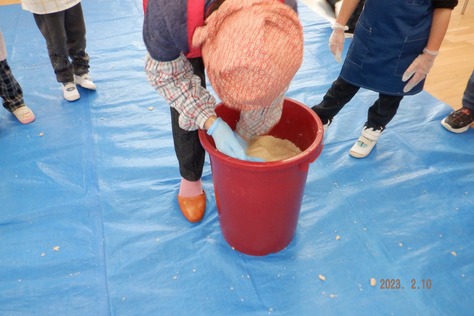 ・毎年、2月頃三穂保育園で継続している味噌作りが始まります。