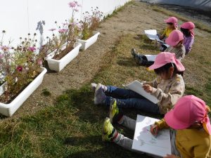 コスモスを育て絵を描いたり、押し花作りもしました。