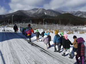 いつもお友だちと歩いている道を、この日はお家の人と手をつないで♡