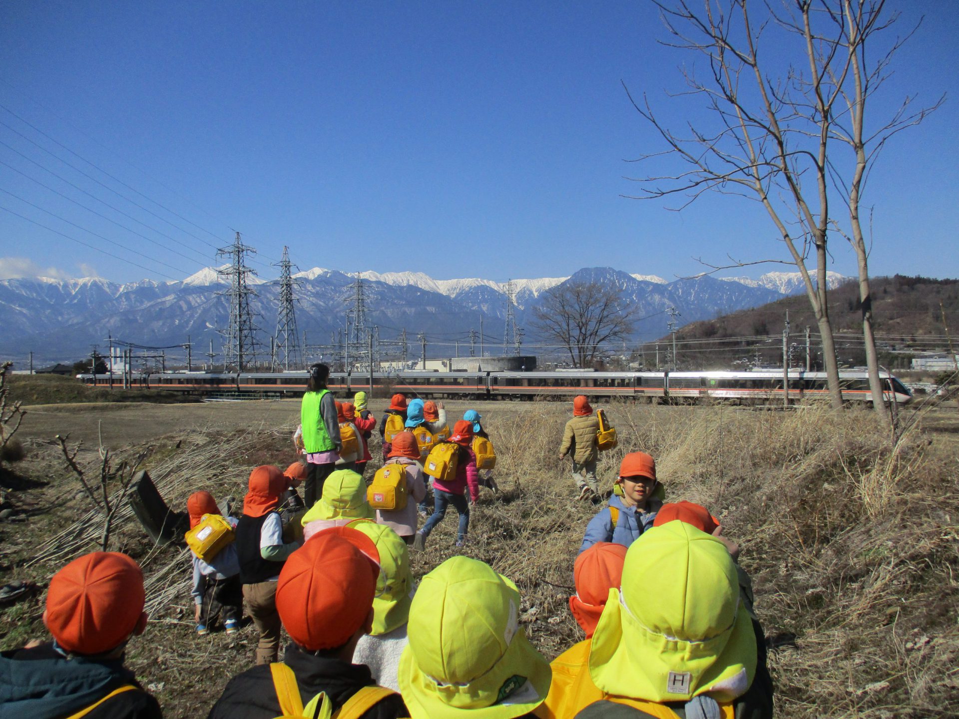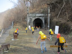 明科地域ならではの「廃線敷」では、子どもたちが想像の世界の中で楽しんでいました。