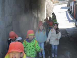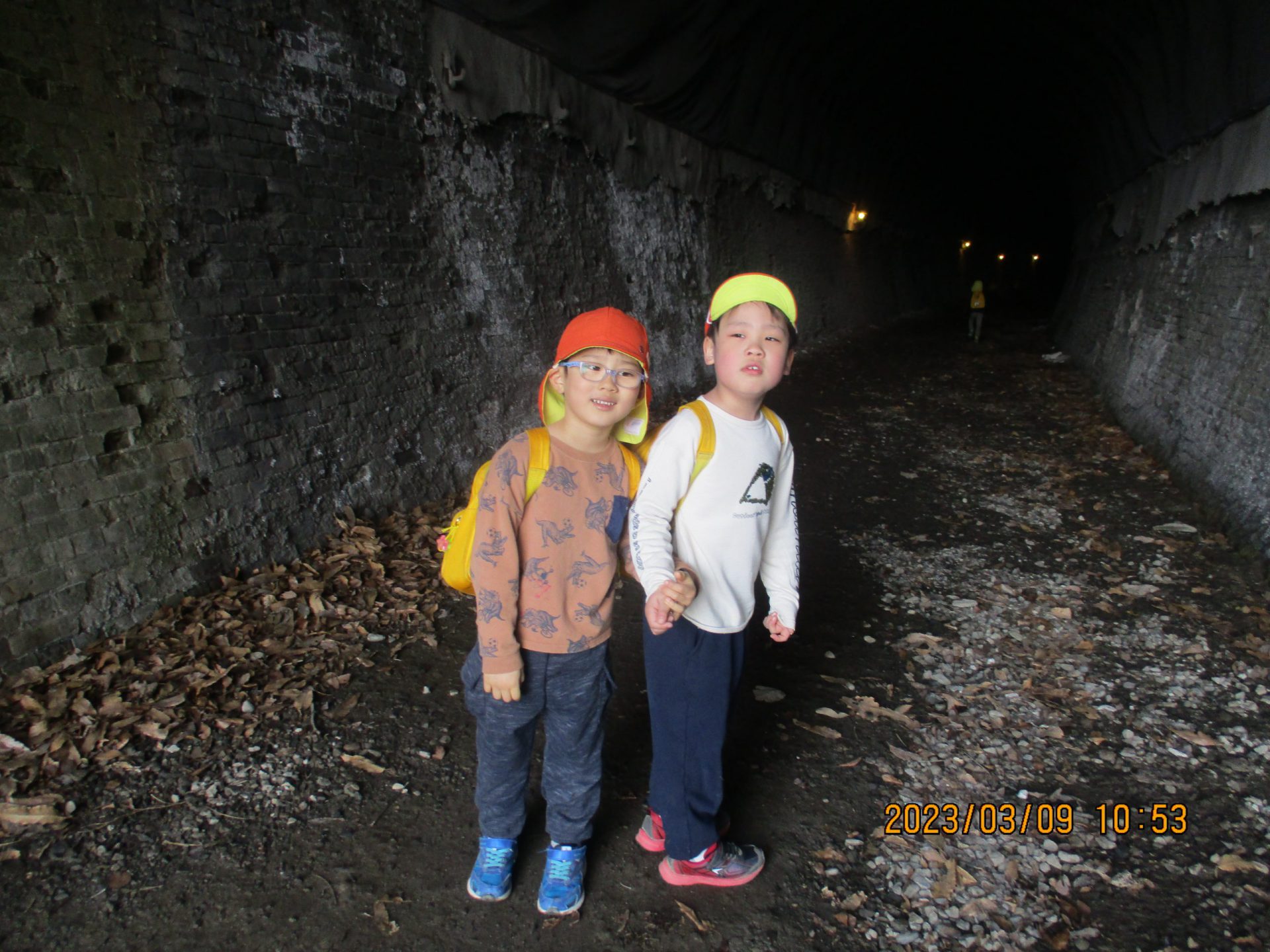 明科は所々にガード下があります。子どもたちはトンネルが大好き!
