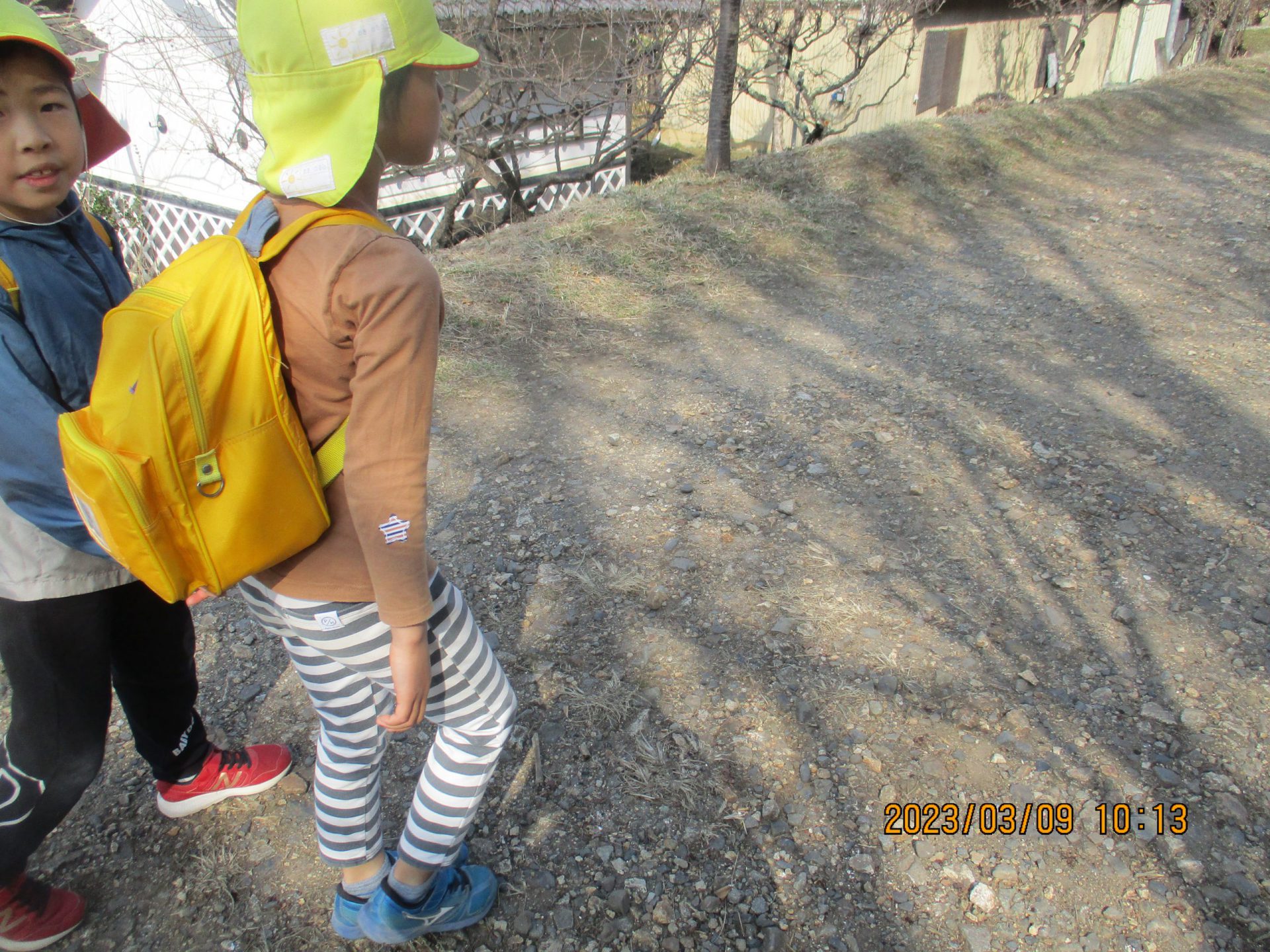 春の日差しが気持ちの良いお天気。小学生気分でカバン(ランドセル)を背負って出発です。