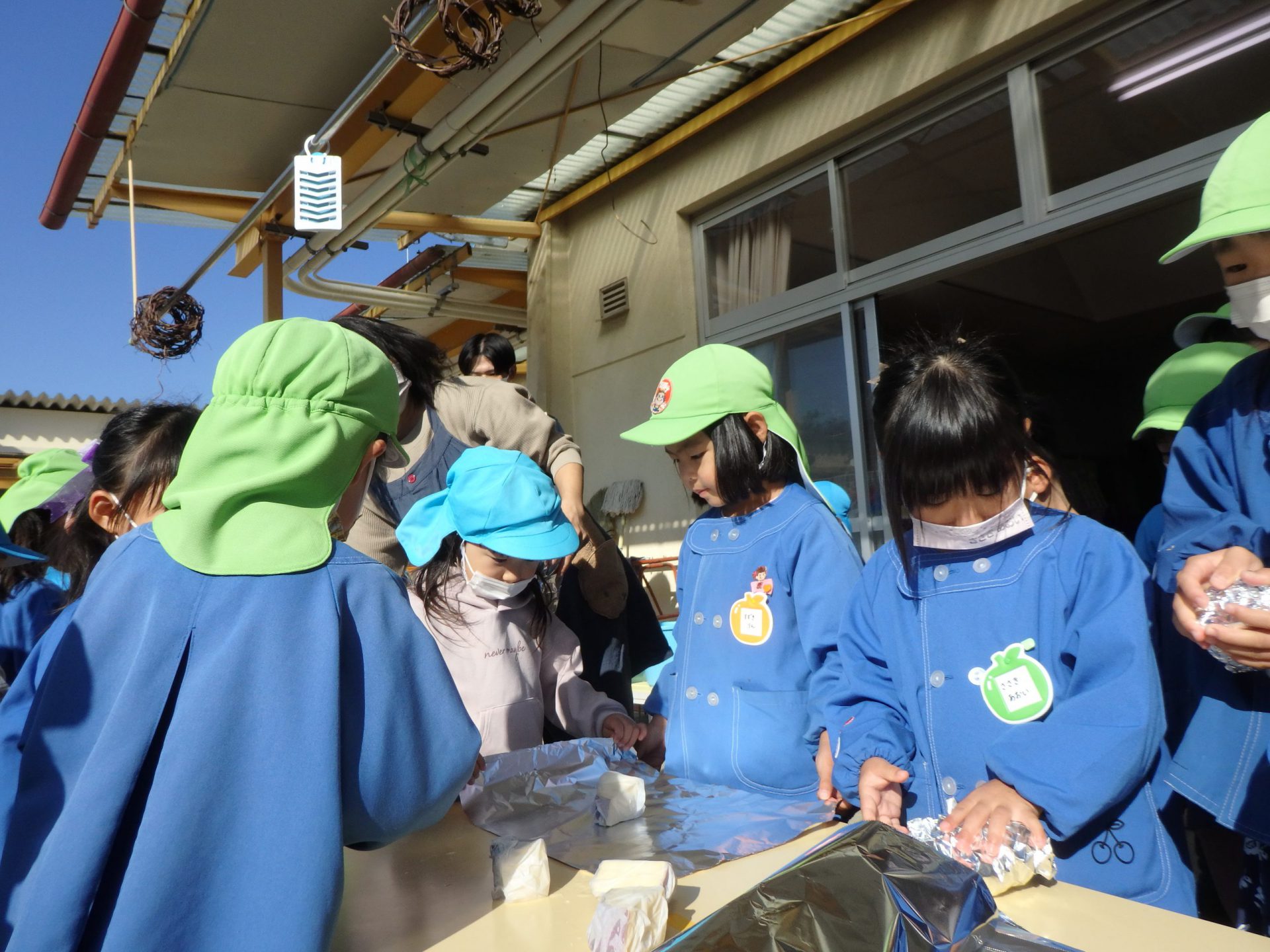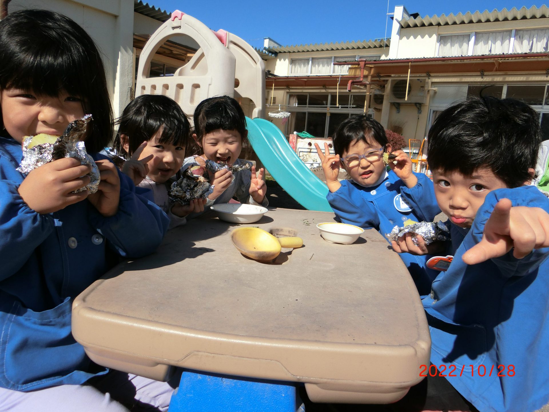 ・異年齢で関りながらアルミホイルの巻き方を教え合ったり、収穫したサツマイモを美味しくいただいたりと異年齢で楽しんでほしい。