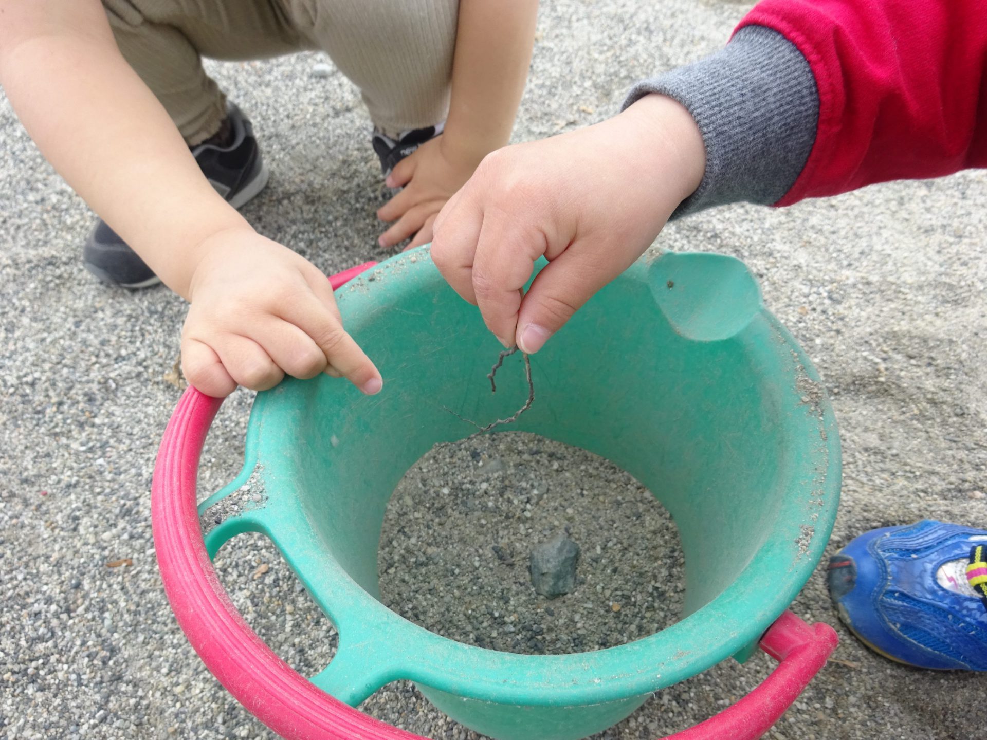 しばらくバケツの中を見つめる子ども達。