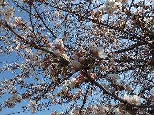 「あったか~い。」「まぶしい~」青い空にピンクの桜が生えて、とてもきれいでした。