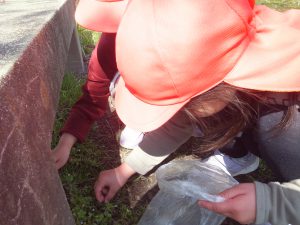 こちらは、黙々とアリ探し。「アリいた!」「ねえ、どうやって捕まえよう?」「アリが止まっているときに、えいって捕まえるのはどう?」作戦会議中・・・