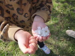 「ポップコーンみたい!」と年少のBくん。開き始めた花びらとつぼみが、ポップコーンに見えたようです。