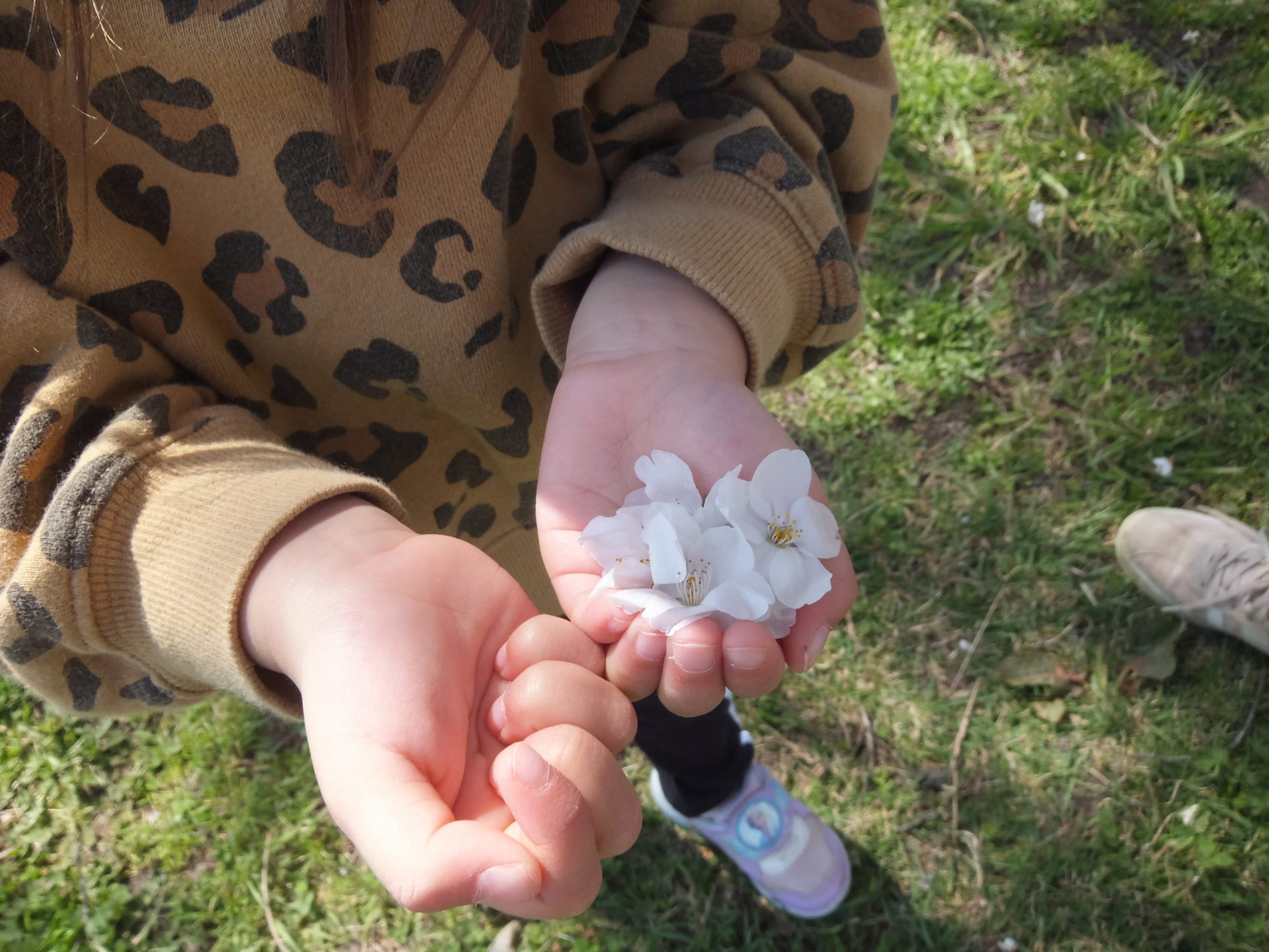 「桜にタッチできるかな?」「えいっ!タッチできたよ~」