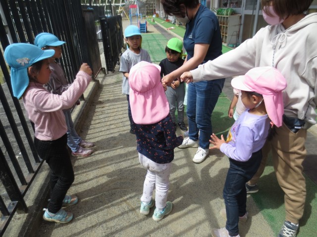 「あ、蹴られちゃった」「捕まえた」とっても盛り上がりました。