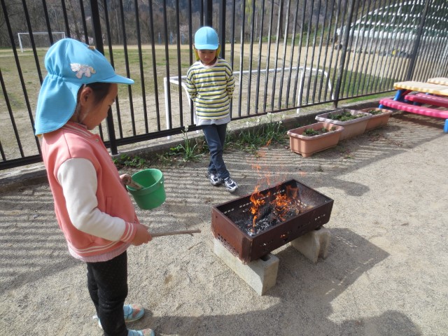 たき火。暖かい日でも火ってなんか見たくなる。匂いもいいね。