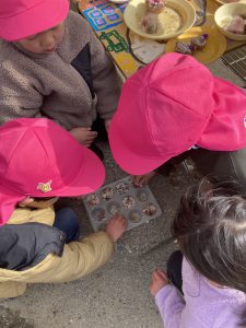 作った氷で”氷屋さん”を作ると子どもたちから言い始め保育園中のお友だちに作った氷をみてもらうことができました。