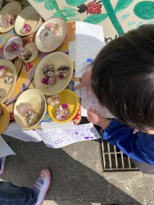 氷を皿に出してテラスに並べ”氷屋さん”を作りお客さん(他クラスや低学年の子どもたち)に来てもらう