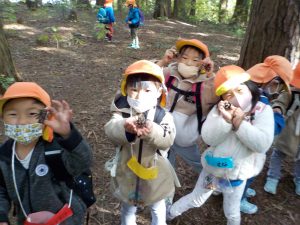 十二天の森では、森の探検をしながらドングリや松ぼっくり・葉っぱなど気に入ったものを