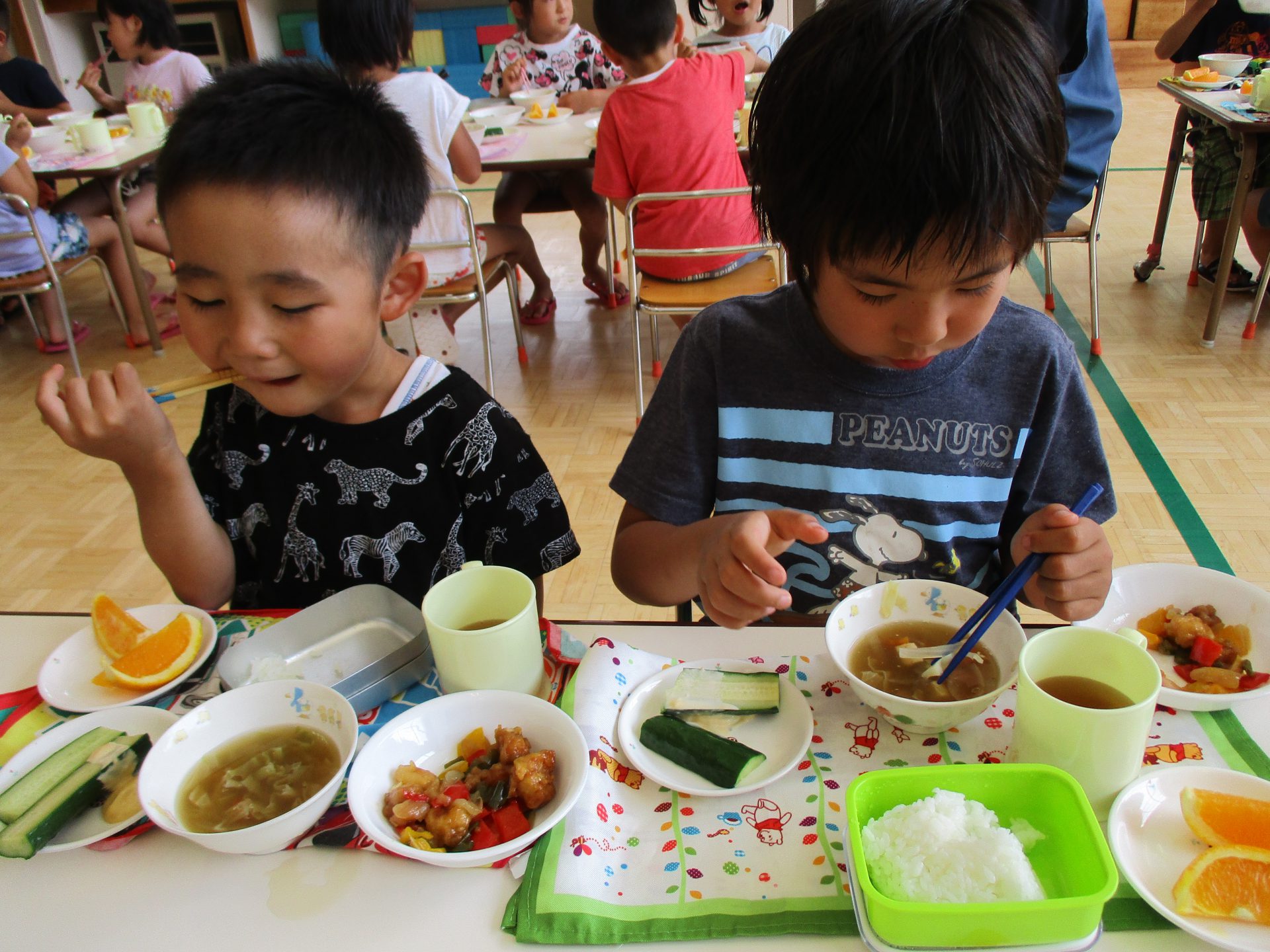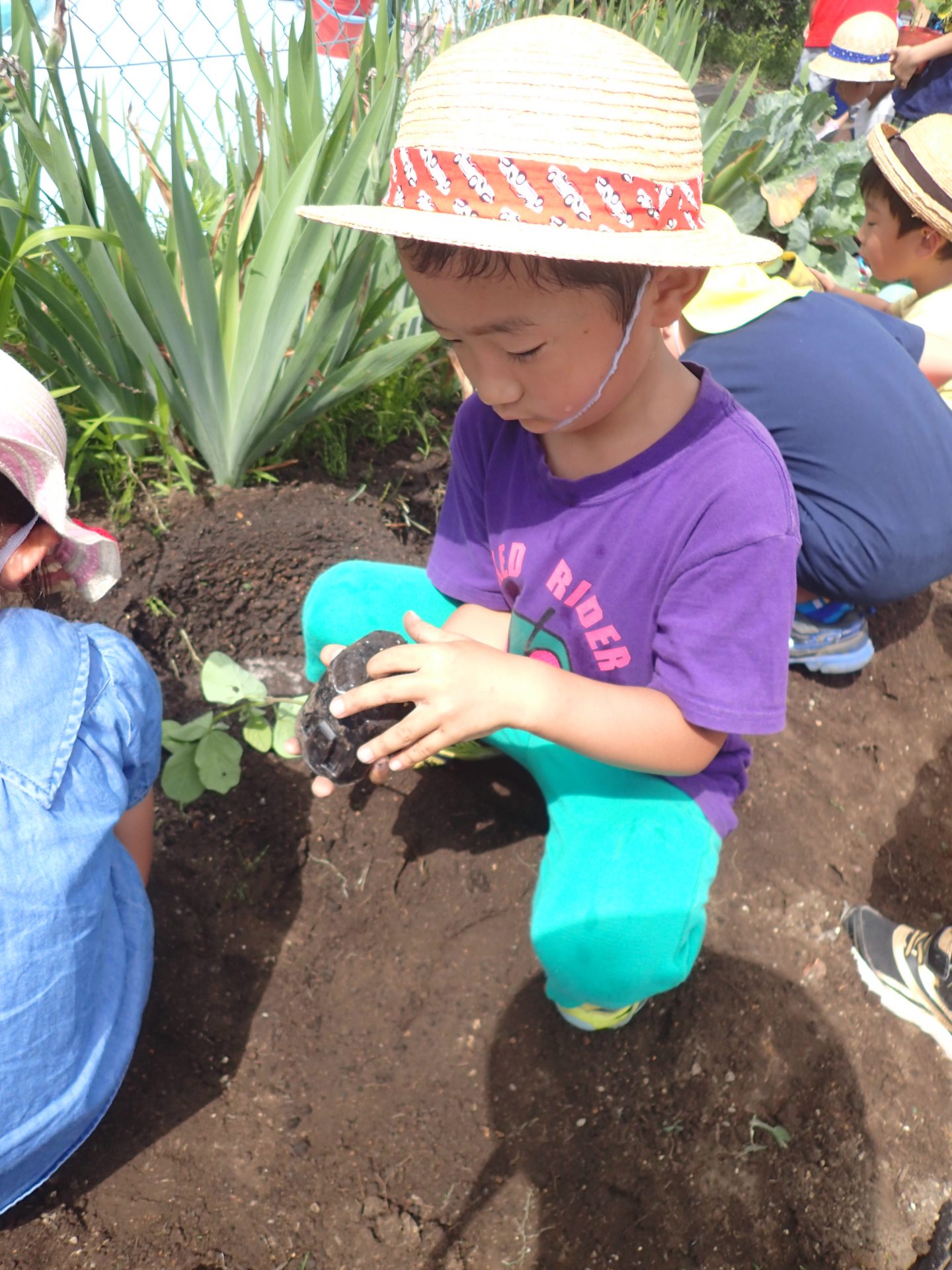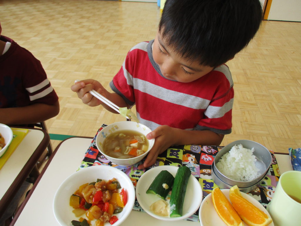 自然の恵みを感じ友達と保育士と一緒に味わいました。