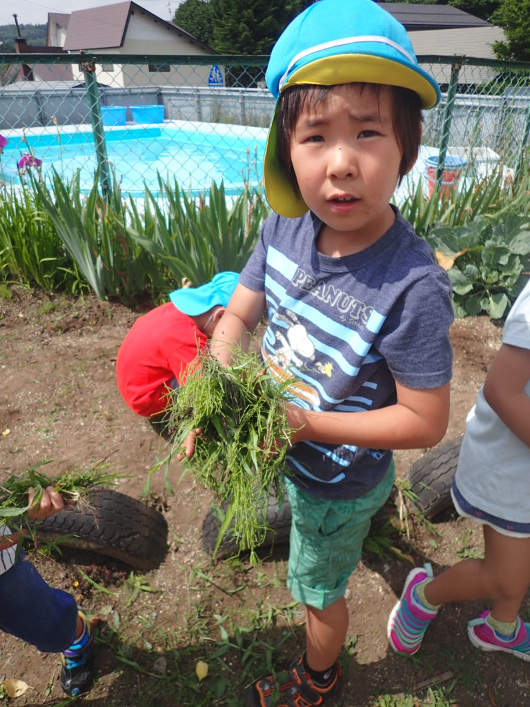 「これは花が咲くからとっちゃダメだよ」草と花が分かったのかな。