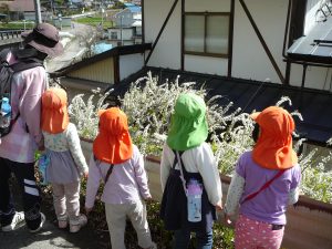 毎年出かけているお花見ですが、今年も景色を見たり歌を歌ったりしながら楽しく出かけてきました。子どもたちは疲れ知らずで、「遠回りして帰ろうよ!」と意欲満々でした。