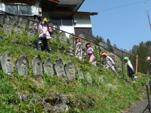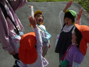 「もうすこしだから、がんばろう!えいえいおー!」気合いを入れます。