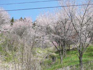 「あんな遠くにも桜が咲いてる!」「ほんとだー」と遠くを見たり、