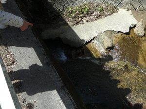 「あっ、川の下のところが階段みたいになってる!」「どこどこ?」「ほんとだ!」「あの、滝みたいな所から流れてきたのかな?」