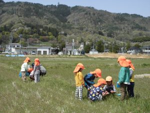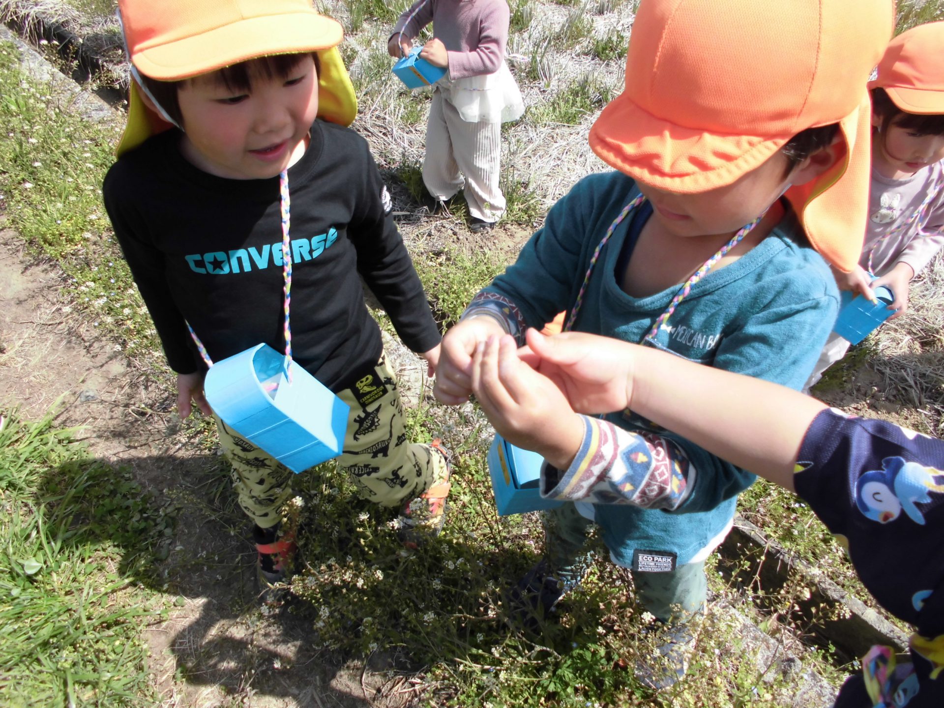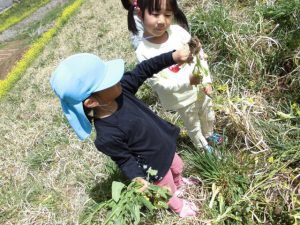 ・生き物に興味をもつ子どもが多かったが、ヨモギやノビロの匂いを嗅いでみることで、草にも興味をもつ姿が見られた。子どもの興味や関心を広げられる環境作りをしていくことが大切だと思う。