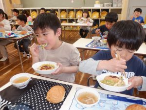 「小さい人の分もいっぱい!!」「給食先生がいっぱい作れそう!」