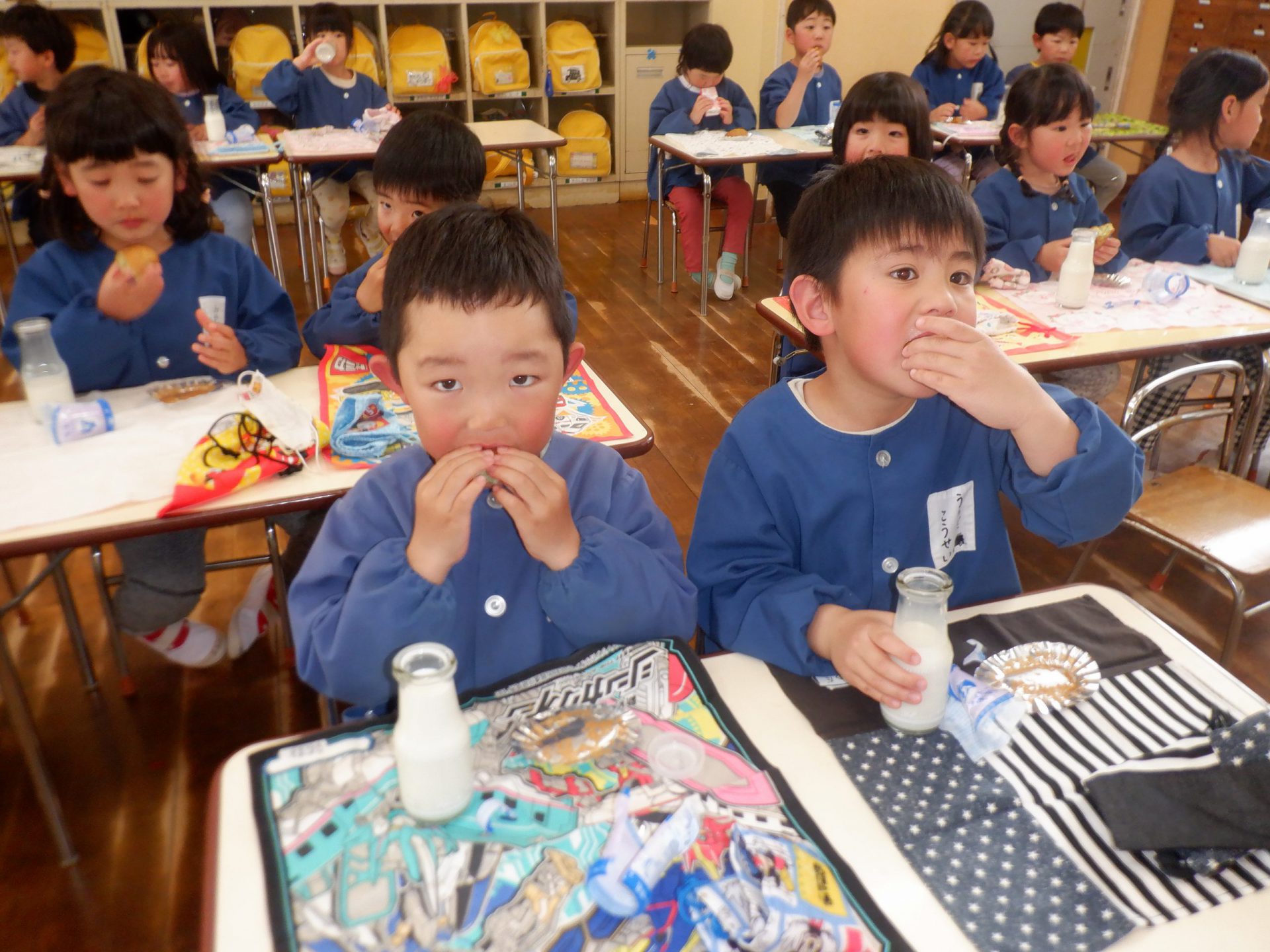 おやつは保育園のみんなでよもぎおやきを食べました★