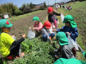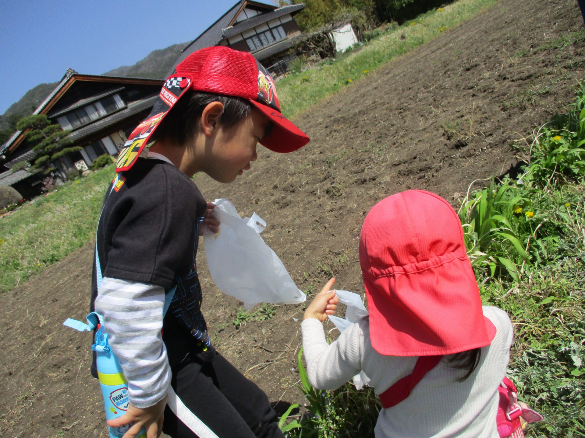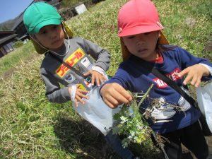 毎年、子どもたちを呼んで下さる地域の方から今年も声を掛けて頂き、よもぎ採りをさせてもらいました。