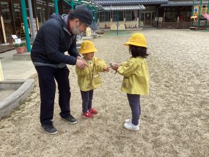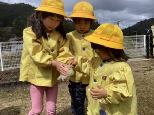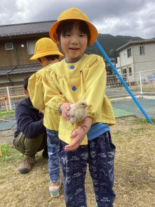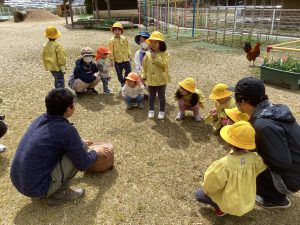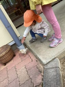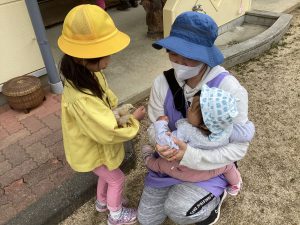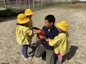 ・今回は、保育所ににわとりを連れてきて下さったお陰で、普段遠くへの園外活動に行けない未満児の子どもたちも触れ合うことが出来たので、ありがたかった。