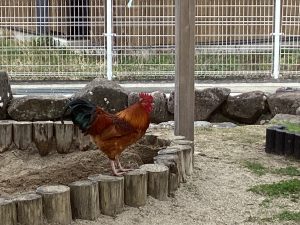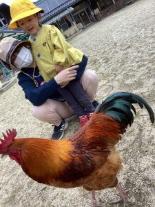 ・今回、人間と触れ合えるよう、生まれたころから攻撃的なにわとりの習性を無くすように慣らしてきたとのこと。触れ合いの機会を設けるにも、人間に慣れるように生き物を育てる大変さを知ると共に、今回の機会を作ってくださった幸山さんに感謝します。