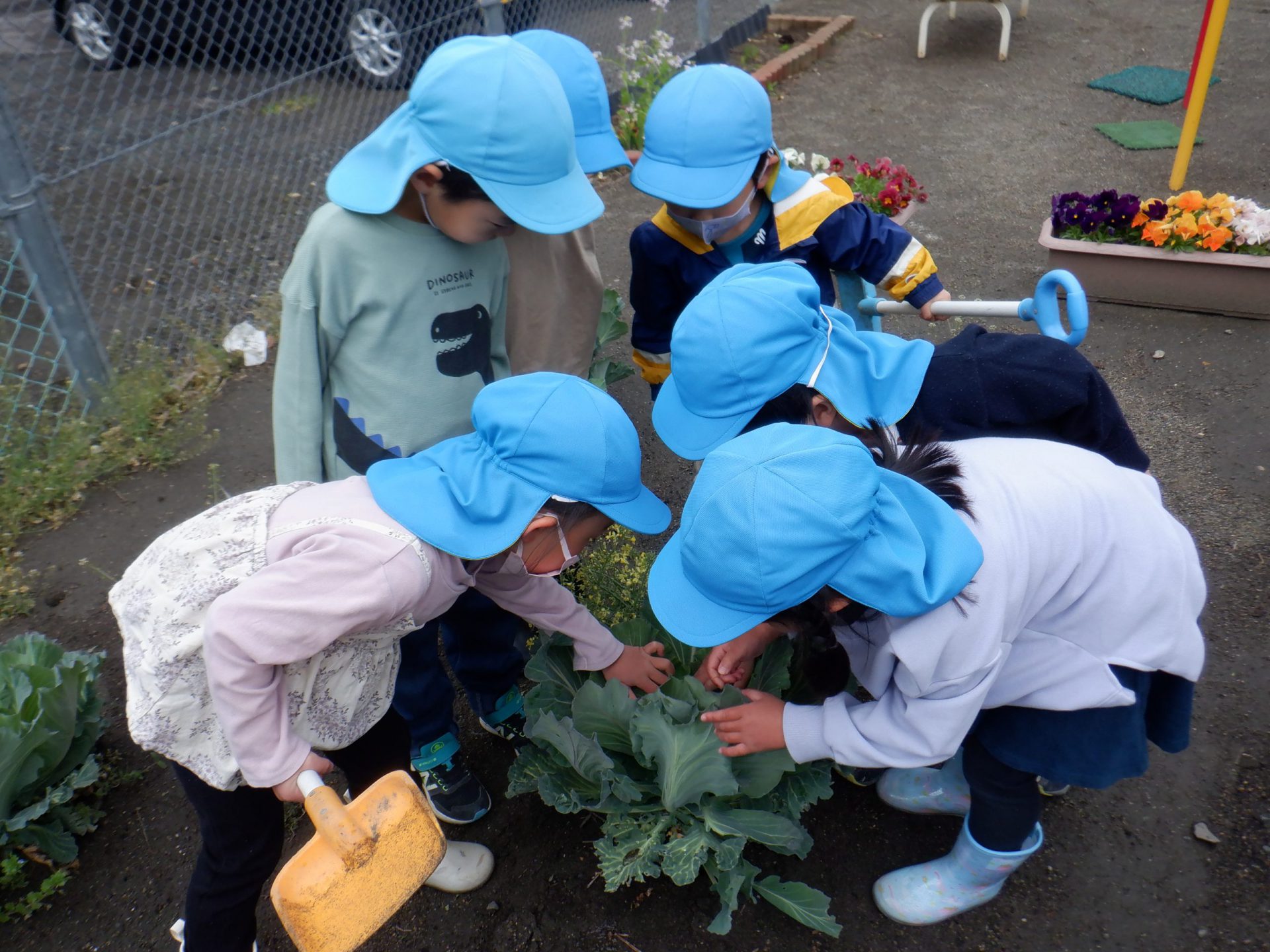 進級して一段と好奇心旺盛な子ども達と身近な園内で散策を楽しもうと、きっかけを作りました。