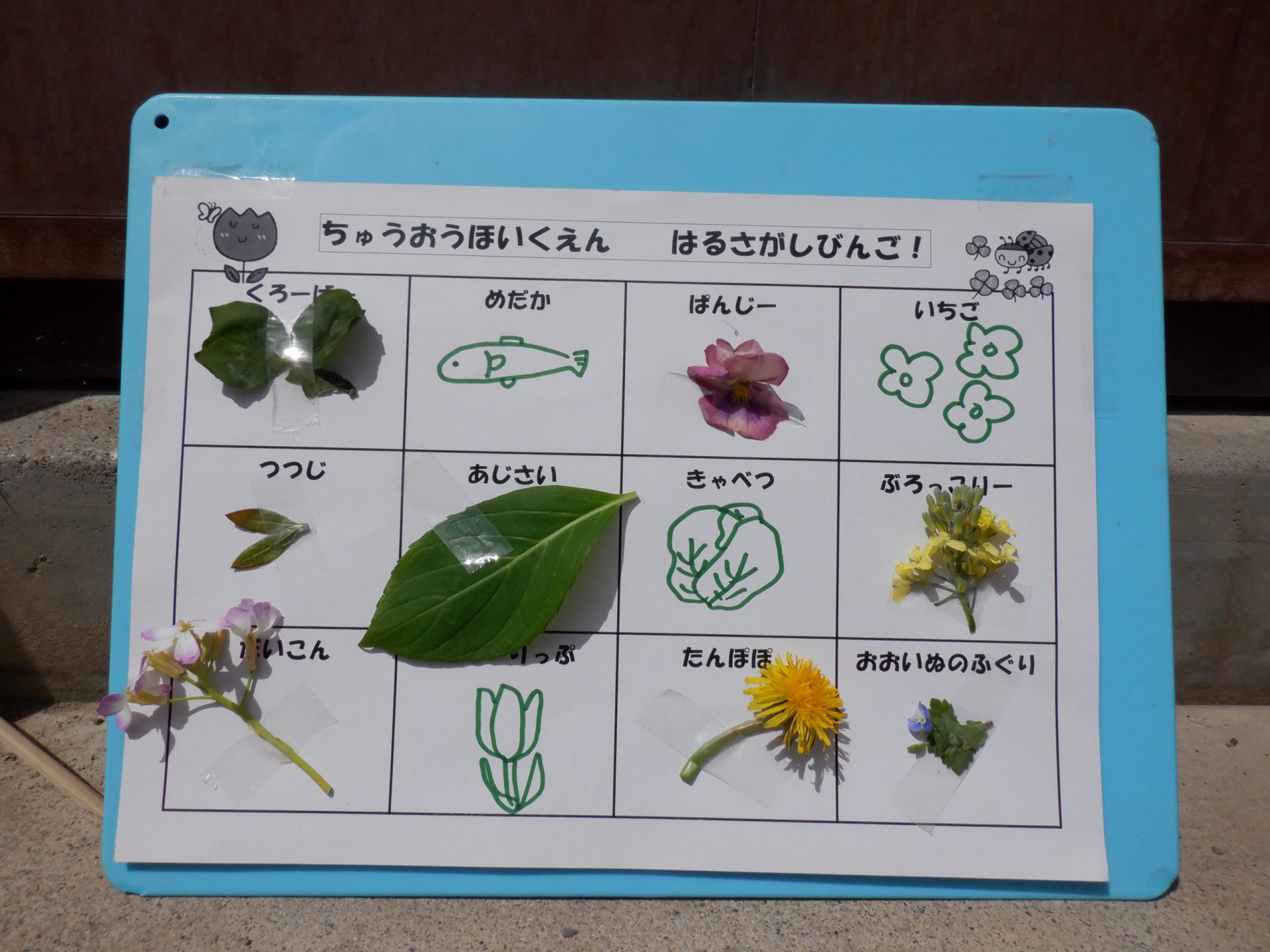 すぐに見つけられない時は、「ちょっと見に行ってくる!」と事務室横に掲示してある植物の写真がヒント。