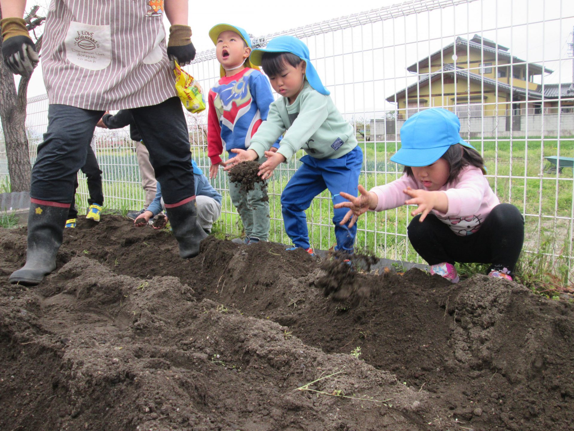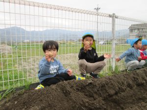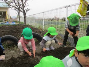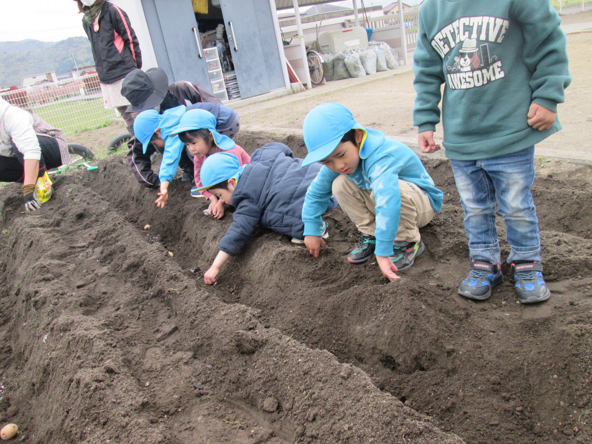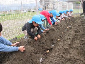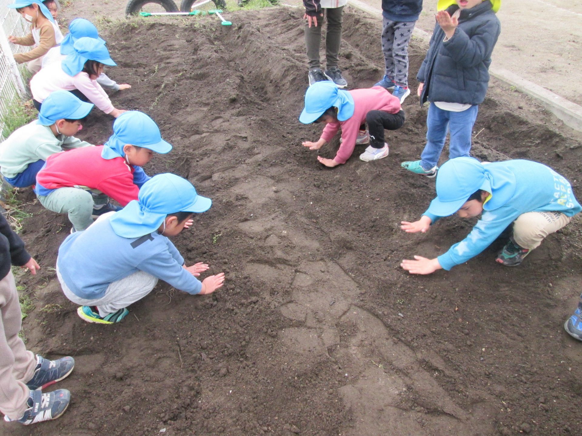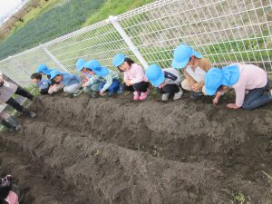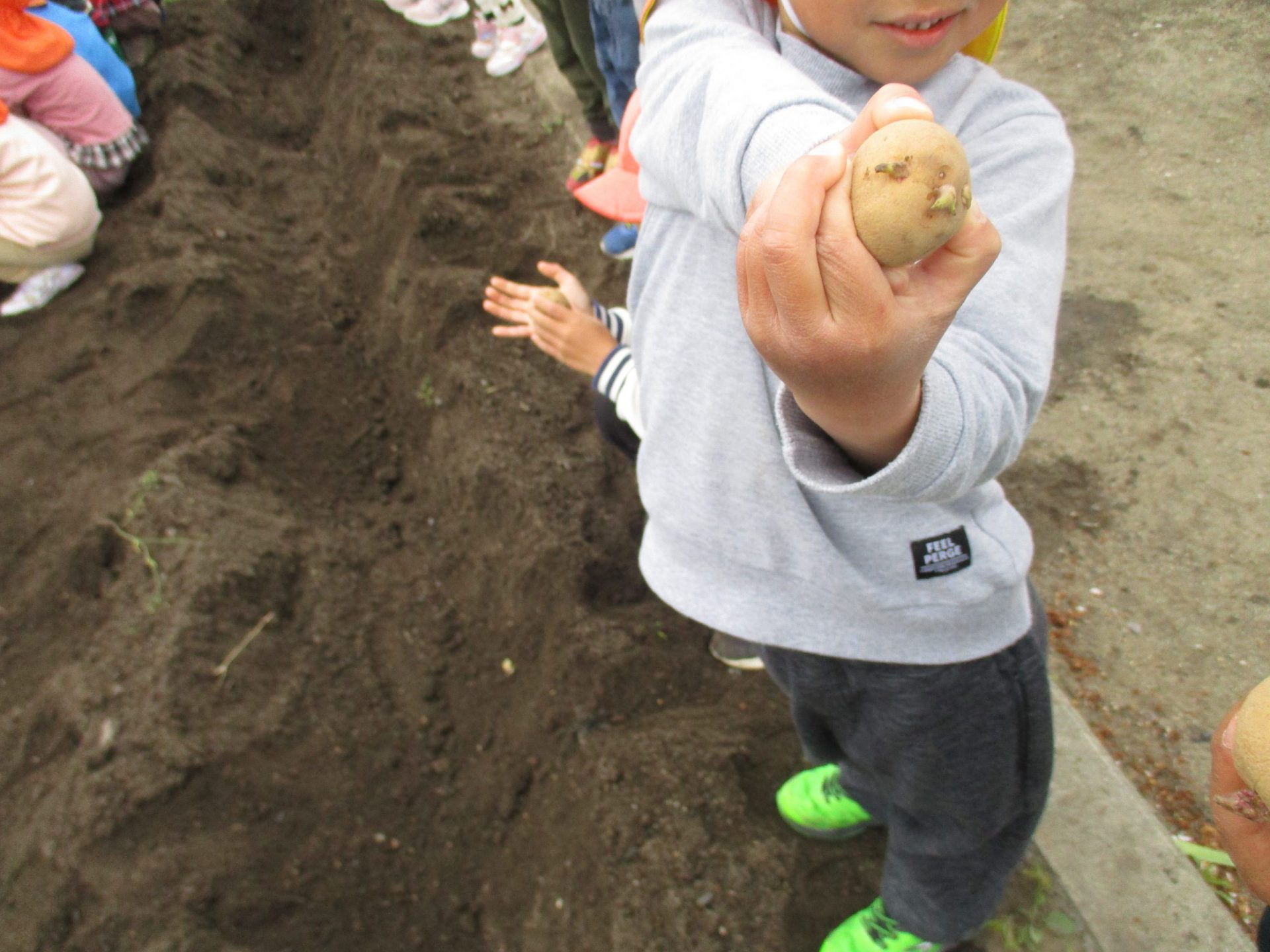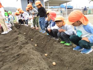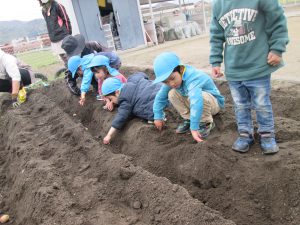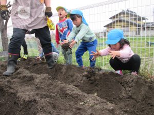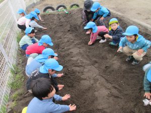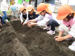 今日は、幼児組みんなでじゃがいもの種芋を植えます。