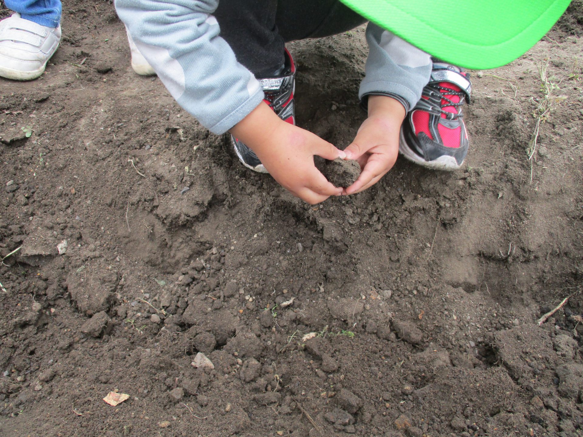 「土がふかふかしてる。」「けっこう重いなあ・・・」