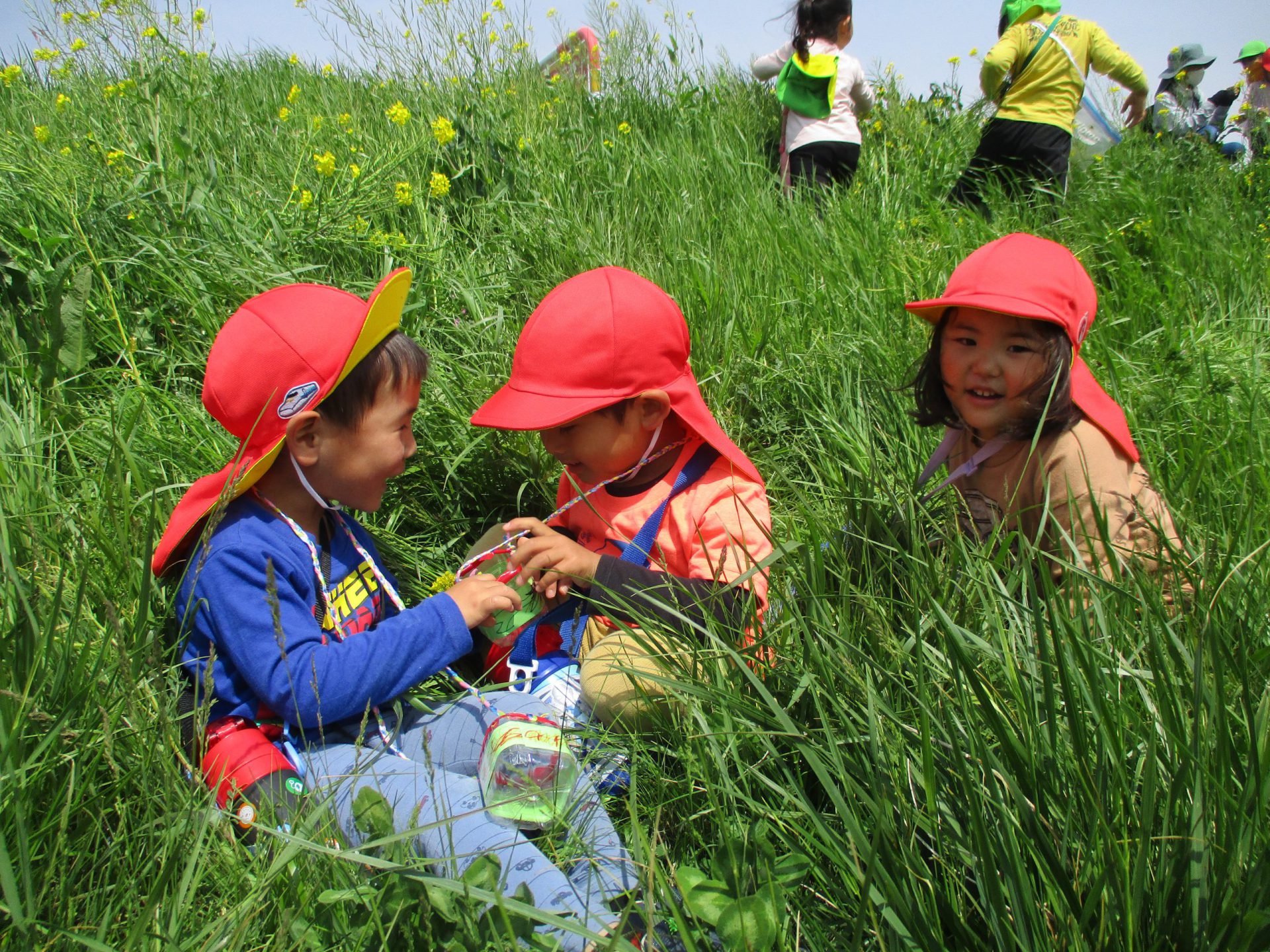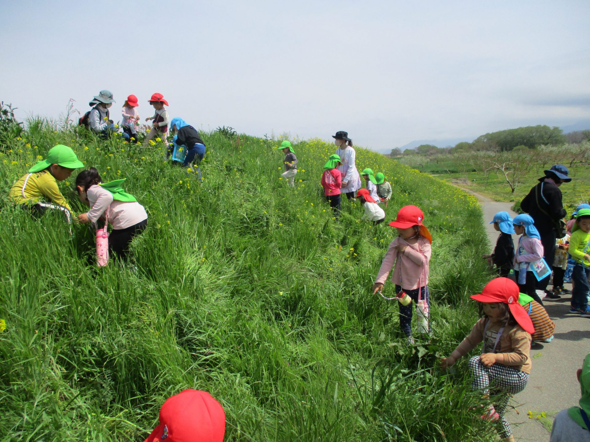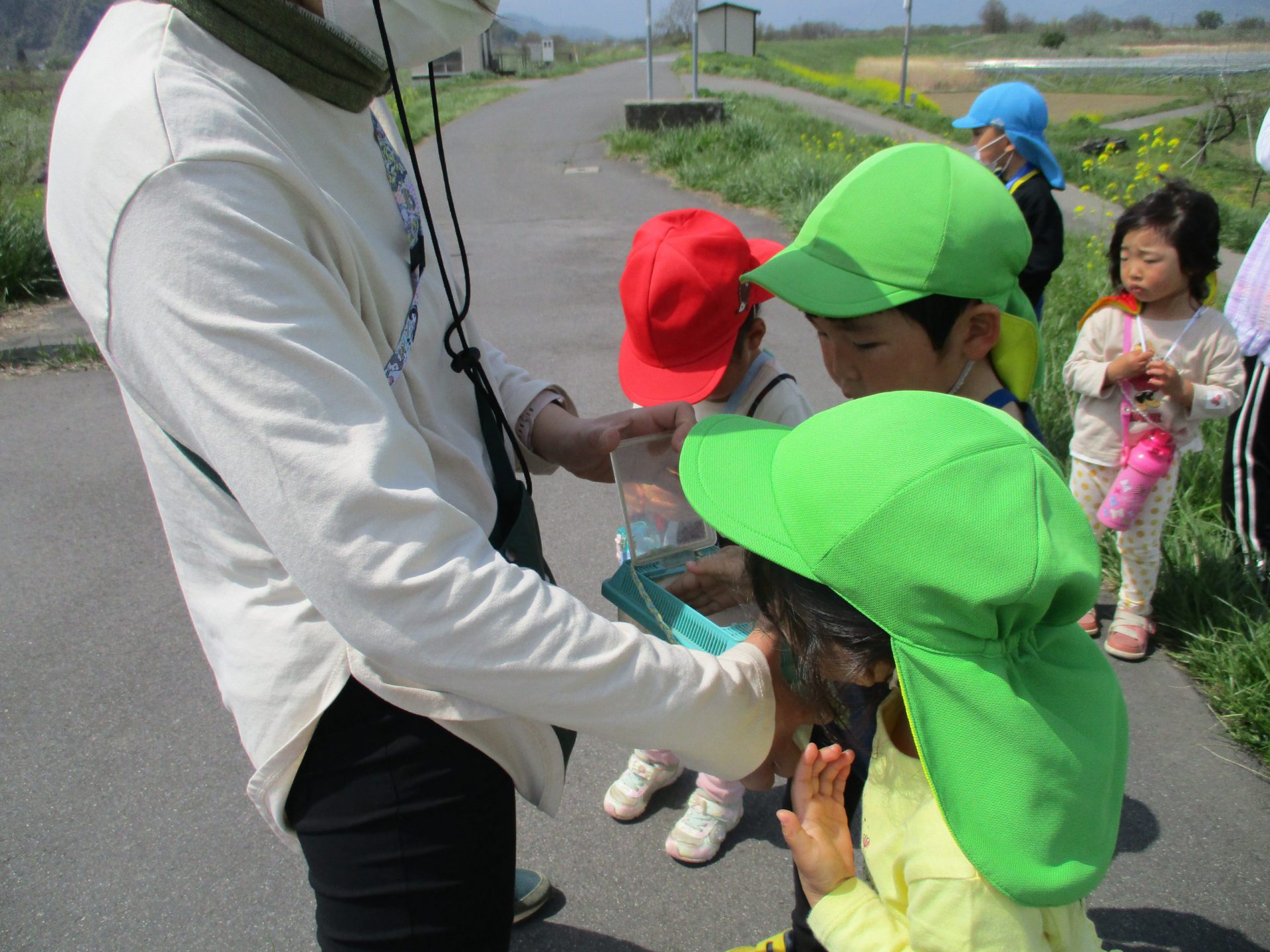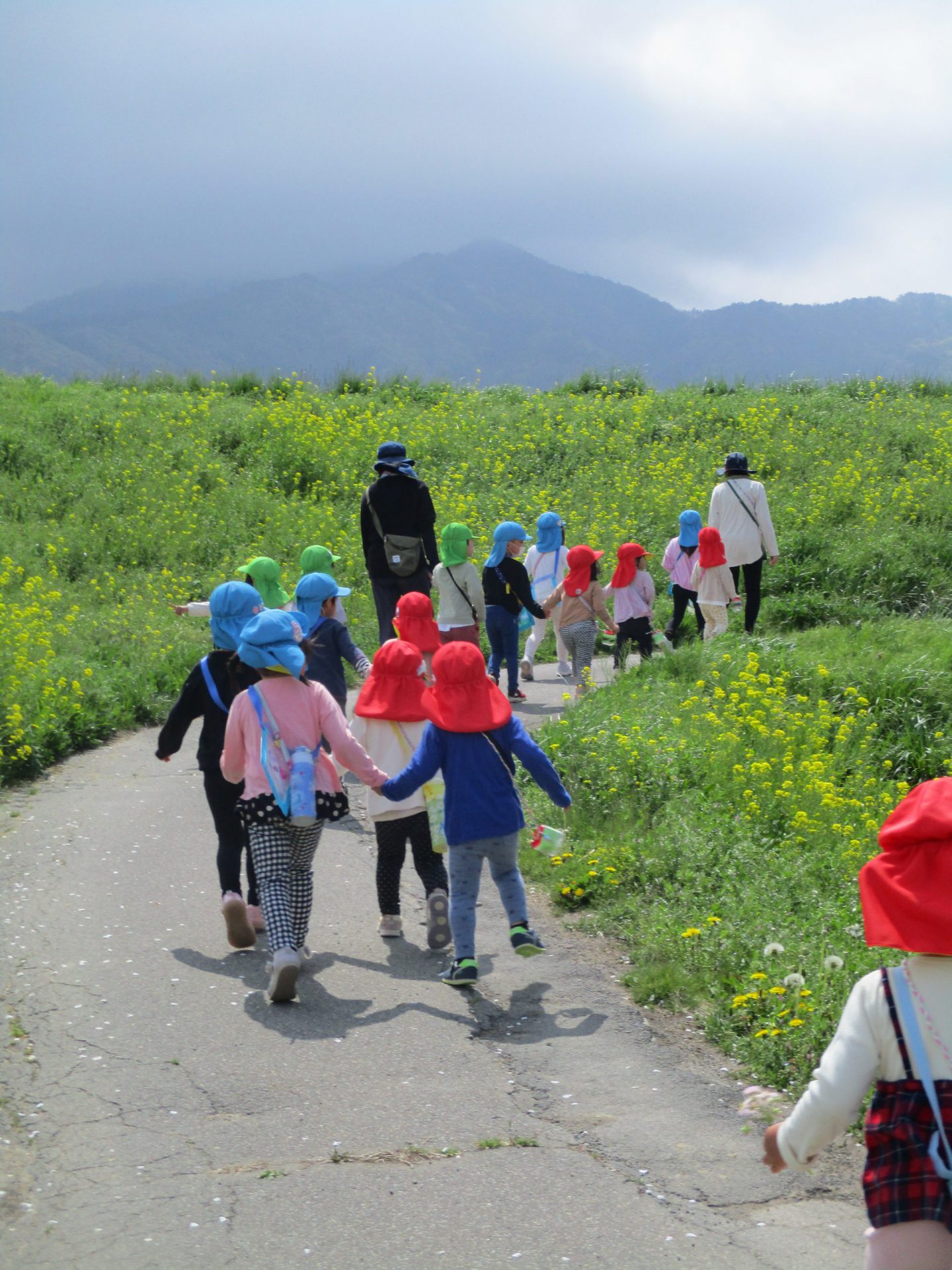 3、4,5歳児で一緒に春を見つけに散歩に出かけました。